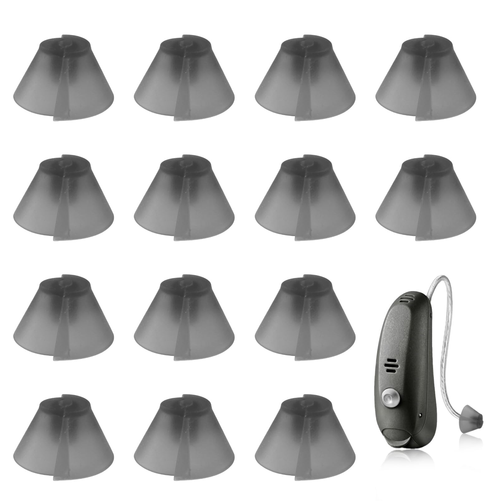 14 Pcs Hearing Aid Tulip Domes Universal Replacement, 14 Pcs, Black