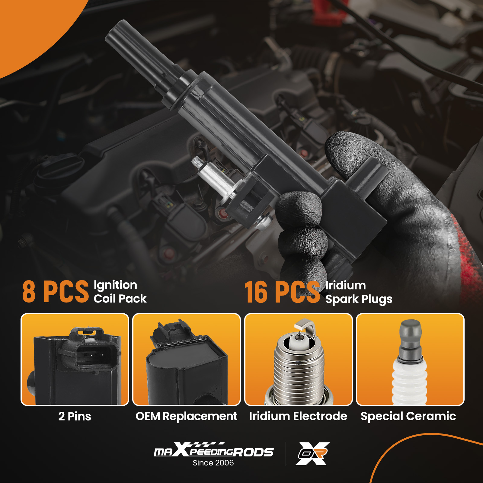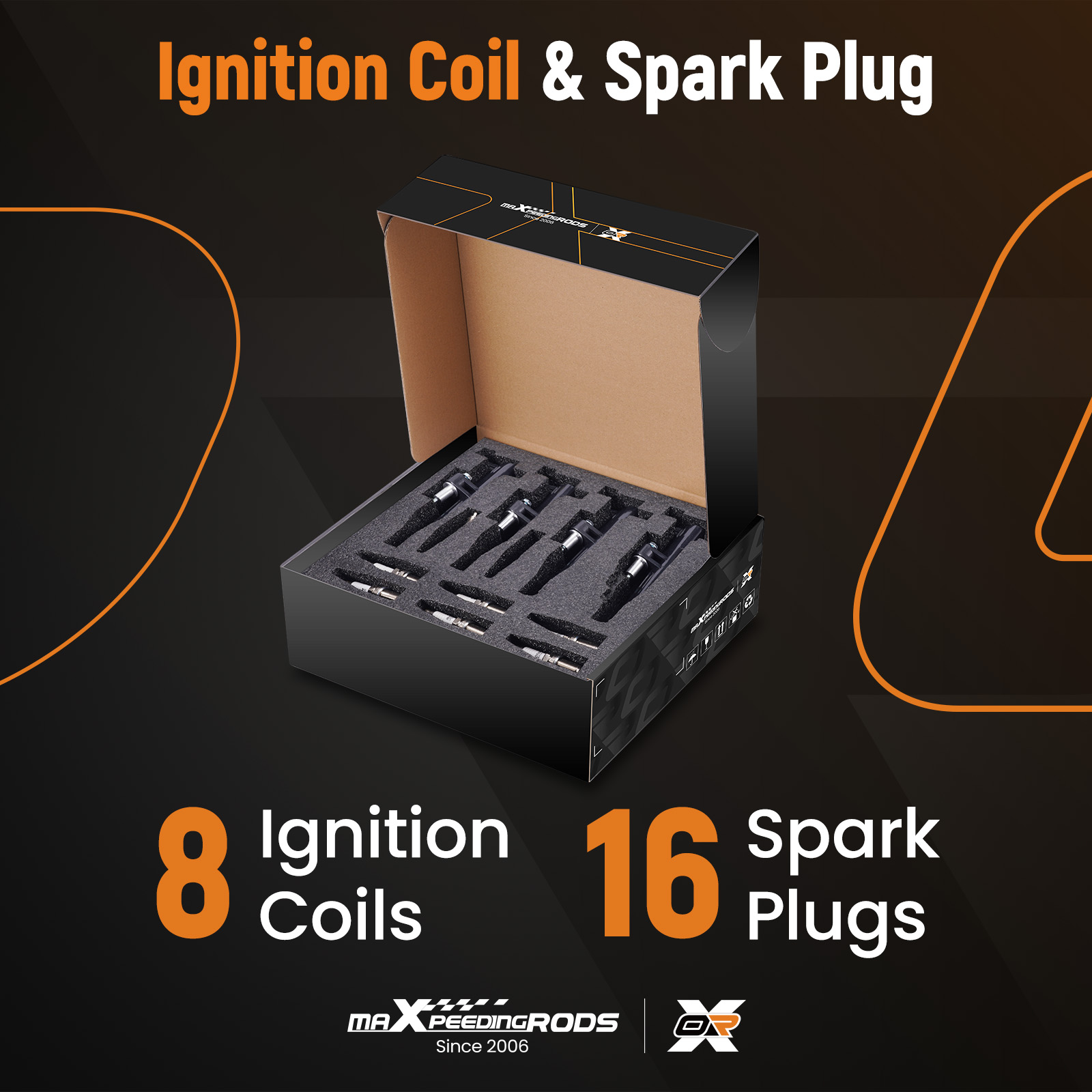 8 PCS Ignition Coils + 16 PCS Iridium Spark Plugs(Showing as the picture)