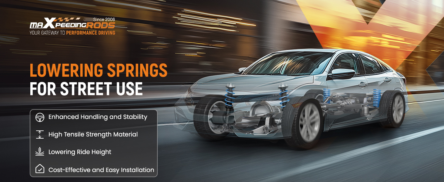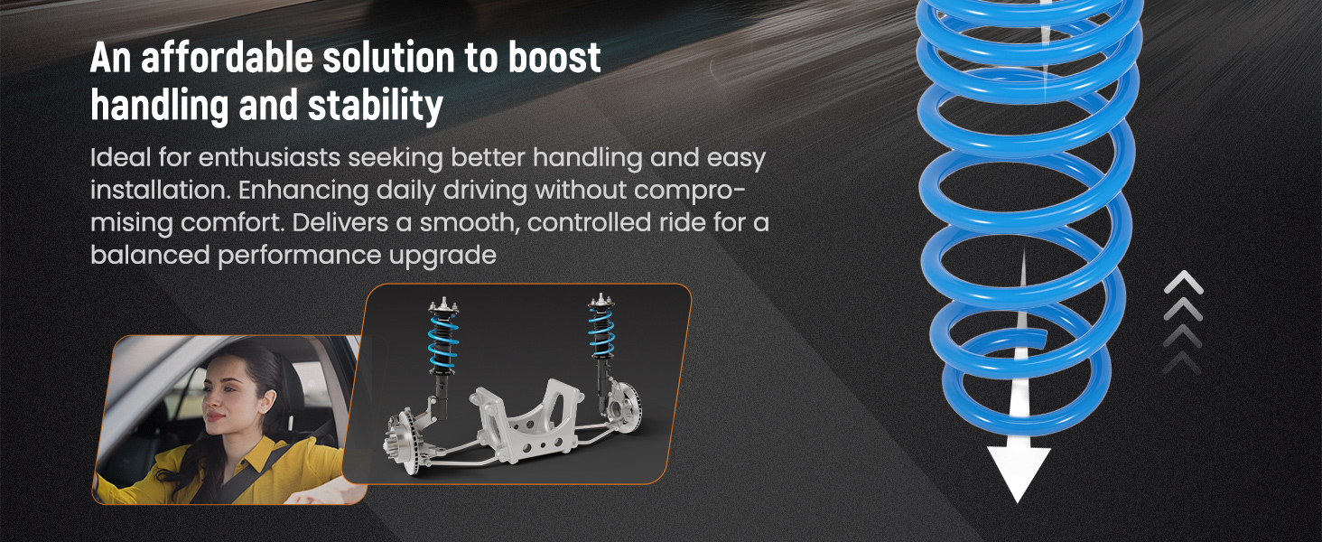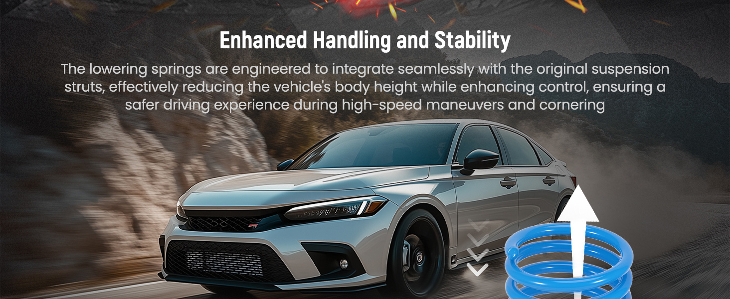 These springs effectively lower your vehicle's center of gravity, improving cornering stability and reducing body roll for a more responsive and controlled driving experience.