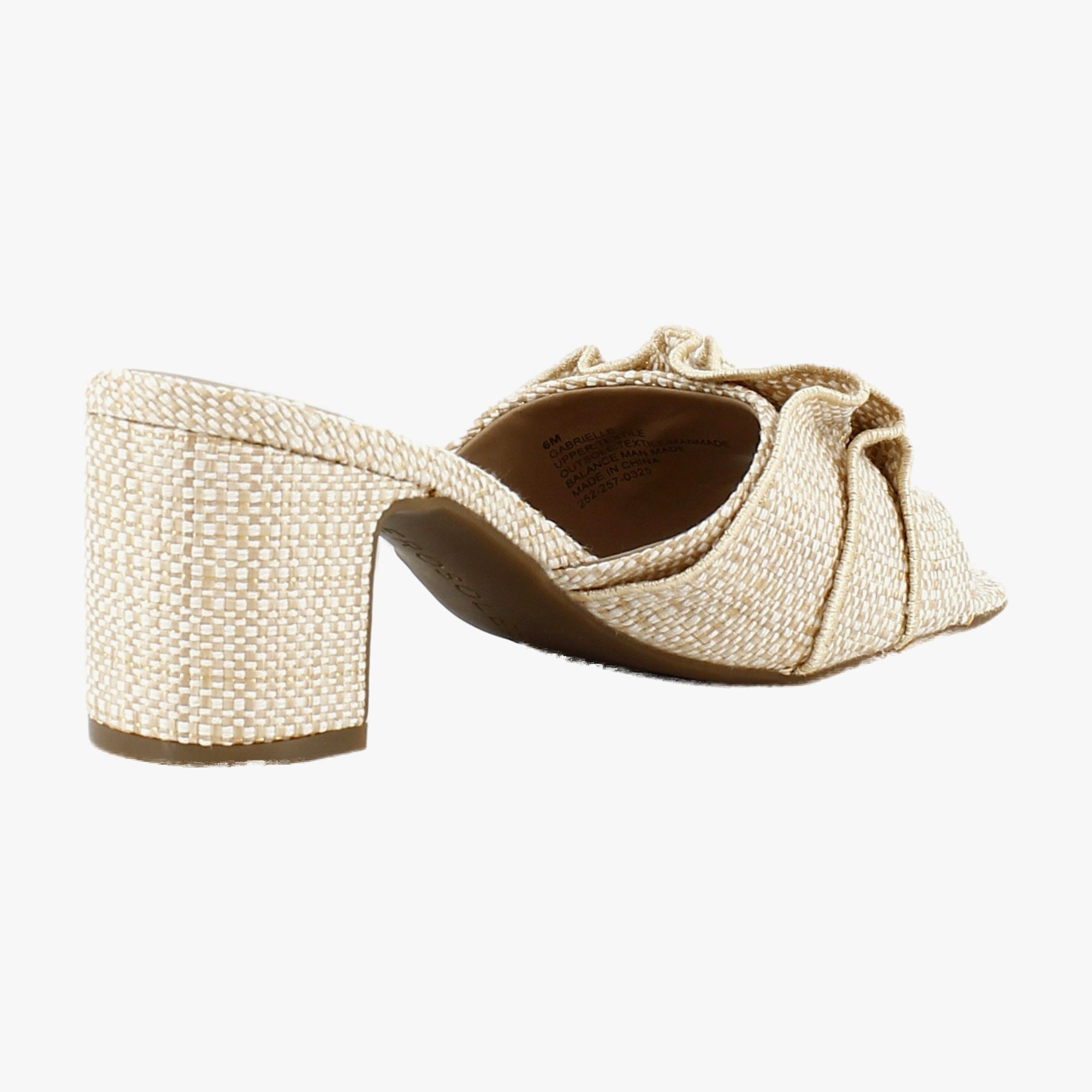 The Aerosoles Gabrielle combines elegance and comfort in a chic slip-on design. Featuring a ruffled upper and a mid-block heel, this sandal is perfect for making a stylish statement while providing all-day wearability.
