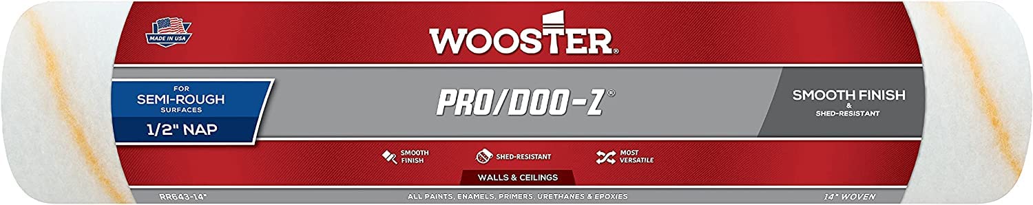 Includes (1) RR643 14 inch Roller cover. 14" long roller cover with 1/2" Nap. Shed-resistant for all paints, enamels, primers, urethanes, epoxies. Proprietary, high-density fabric stays resilient, resists matting for a smooth, professional _x001E_nish. Green, double-thick polypropylene core resists water, solvents & cracking.