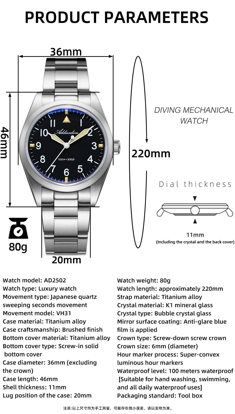 Water Resistance: 100 meters (Suitable for hand washing, swimming, and all daily waterproof use)