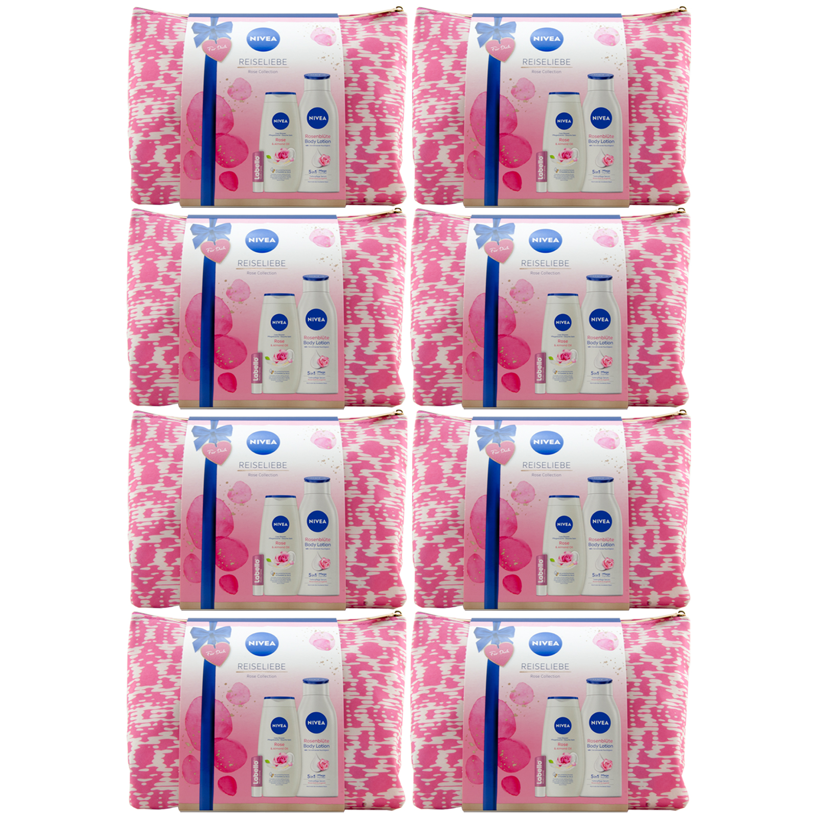 Nivea Geschenkset Reiseliebe 8 Sets= je 8 x Dusche /Bodylotion /Labello /Tasche