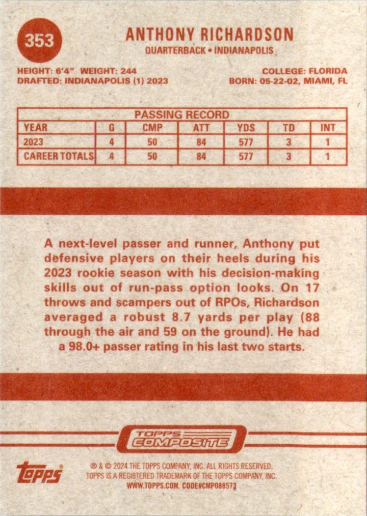 | Anthony Richardson 2023 Topps Composite RC #353 Indianapolis Colts |