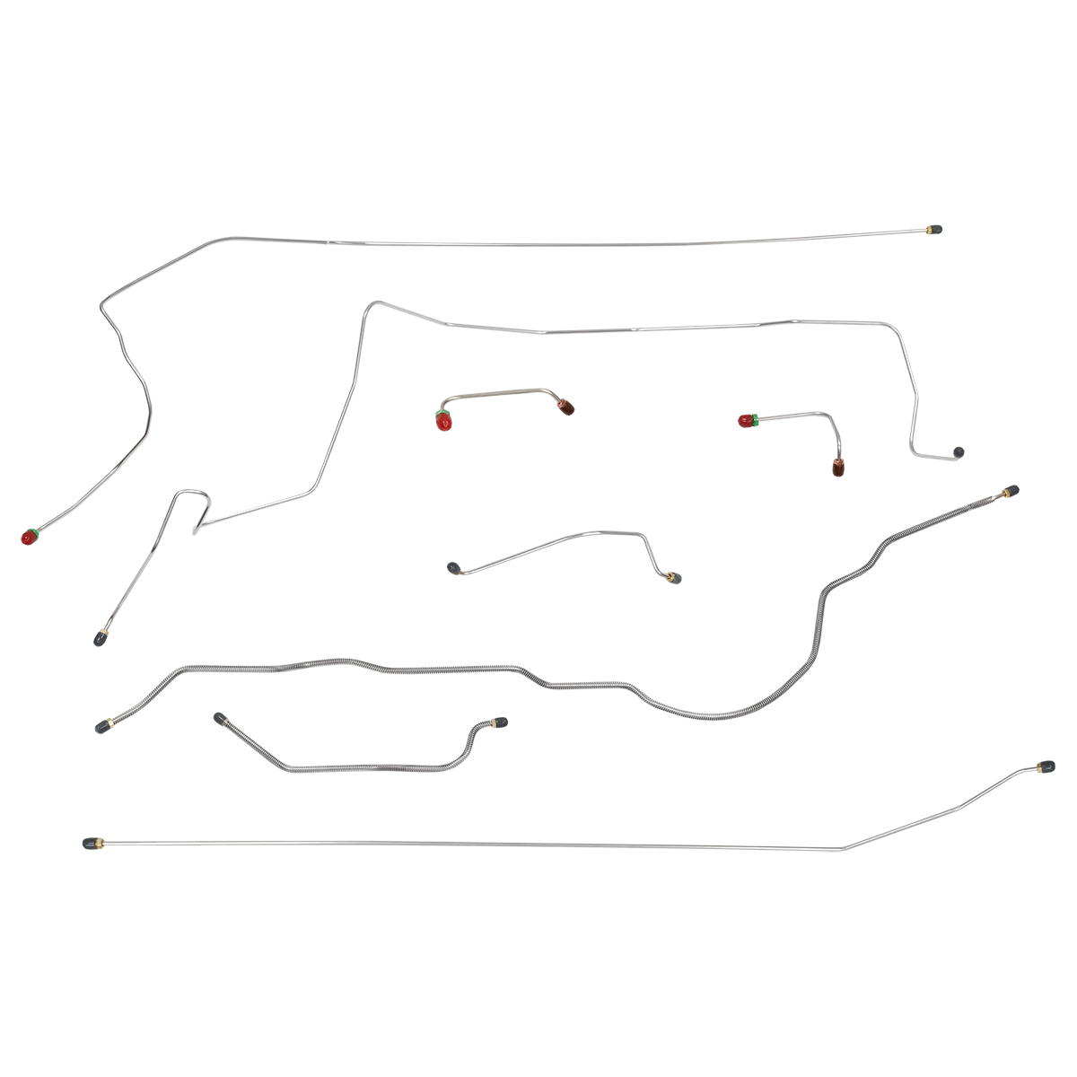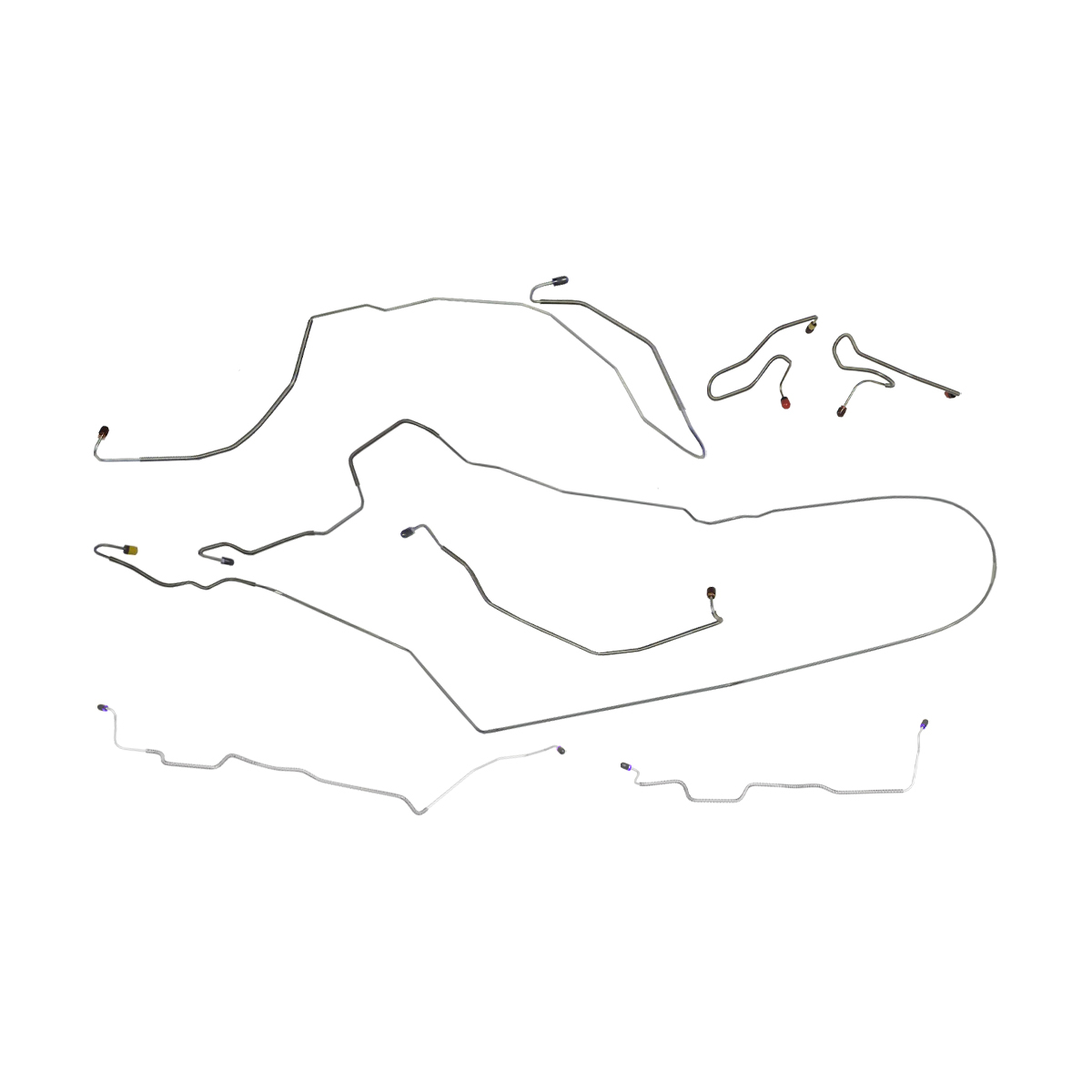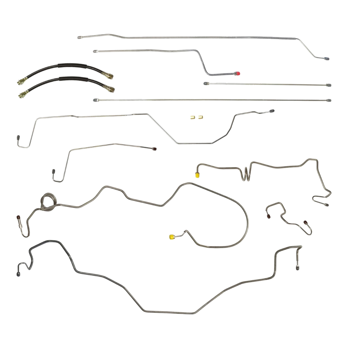 This preformed complete brake line kit will replace all the metal brake lines on your vehicle and includes the master cylinder lines, left front line and right front crossover line, intermediate lines, and rear axle lines/trailing arm lines.