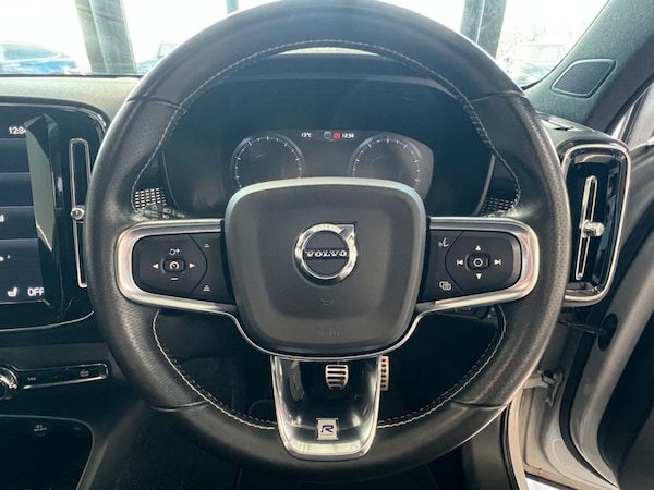 Discover this 2020 Volvo XC40 T3 R Design Pro, a stylish and practical compact SUV. This Euro 6 compliant model is powered by a 1.5 litre petrol engine, offering a responsive drive with a 0-60mph time of 8.8 seconds. It comes equipped with a host of desirable features, including a power glass tilt and slide panoramic sunroof with sun curtain, perfect for letting in natural light. For enhanced safety and peace of mind, it boasts Intellisafe Surround with Blind Spot Assistance, and rear park assist with rear parking sensors. Inside, youll find smartphone integration with Apple CarPlay and Android Auto, complete with two Type A USB ports, keeping you connected on the go. The R Design Pro trim ensures a premium feel, complemented by 2 zone electronic climate control with a cooled glovebox and rear air vents for everyones comfort. This XC40 also offers generous boot space, making it ideal for everyday life and weekend adventures. These features collectively demonstrate how this Volvo XC40 provides a superior driving experience compared to other vehicles in its class..12.3in Active TFT Crystal Drivers Information Display, 12V Socket - Front Tunnel Console and Cargo Compartment, 2-Zone Electronic Climate Control with Cooled Glovebox and Rear Air Vents, 20in Alloy Wheels - 5 Double Spoke Diamond Cut - Matt Black, 9in Centre Console Portrait Touch Screen, ABS - Anti-Lock Brake System, Adaptive Brake Lights including High Level LED Brake Light, Adjustable Steering Force, Ambient Door and Instrument Panel Lighting, Anti-Theft Alarm including Immobiliser - Volume Sensor and Level Sensor, Autodimming Interior Mirror, Autofolding Heated Power Door Mirrors, Automatic Headlight Levelling System, Automatic LED Headlights with Active High Beam incorporating Day Running Lights, Black Headlining, Black Stone Door Mirrors, Black Stone Roof, Bluetooth Handsfree System, Care Key with User Defined Top Speed, Centre Console Cupholders and Storage, City Safety, Cruise Control, Cutting Edge Aluminium Inlays, DAB - Digital Audio Broadcasting Radio, Dark Tinted Windows - Rear Side Windows and Cargo Area, Drive Mode Settings, Driver Knee Airbag, Drivers Side Lower Dashboard Credit Card Storage Compartment, Dual Stage Driver and Passenger Airbags, Electronic Climate Control with CleanZone Air Quality System with Pollen Filter, First Aid Kit, Front Aluminium Tread Plates, Front Door Pocket and Front Cupholder Illumination, Front Footwell Illumination, Front LED Fog Lights with Cornering Function, Front Reading Lights and Theatre Lighting, Front Seat Cushion Extensions, Front and Rear Power Windows, Gear Knob - Leather, Glovebox Bag Hook, Headlight Cleaning System, Headlights - Active Bending, Heated Front Seats, Heated Front Windscreen and Washer Nozzle, Height and Reach Adjustable Steering Column, Height and Tilt Adjustable Driver Seat, High Gloss Black Deco Lower Front Bumper, High Gloss Black Front and Rear Skid Plate, High Gloss Black Mesh Front Grille with High Gloss Black Surround, High Gloss Black Window Trim Surround, Hill Descent Control, Hill Start Assist, Home Safe and Approach Lighting, IC - Inflatable Curtains - Full Length, ISOFIX Attachment - Outer Rear Seats, Illuminated Vanity Mirrors, Key Integrated Remote Control Central Locking including Fuel Flap with Deadlocking System and Auto Open-Close Power Windows, Keyless Start, Lane Keeping Aid with Driver Alert Control, Load Protection Net, Lockable Glovebox Compartment with Illumination, Locking Wheel Nuts, Luggage Compartment Illumination, Mechanical Child Locks - Rear Doors, Mult