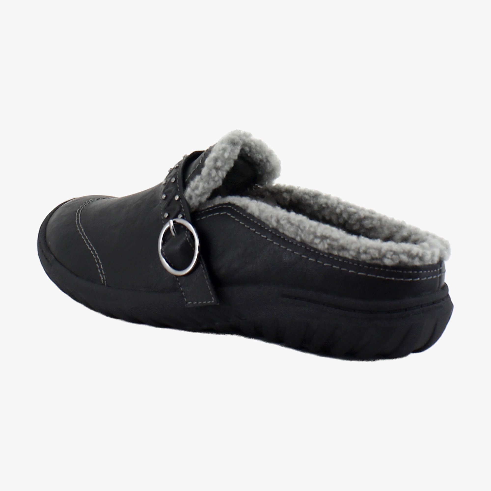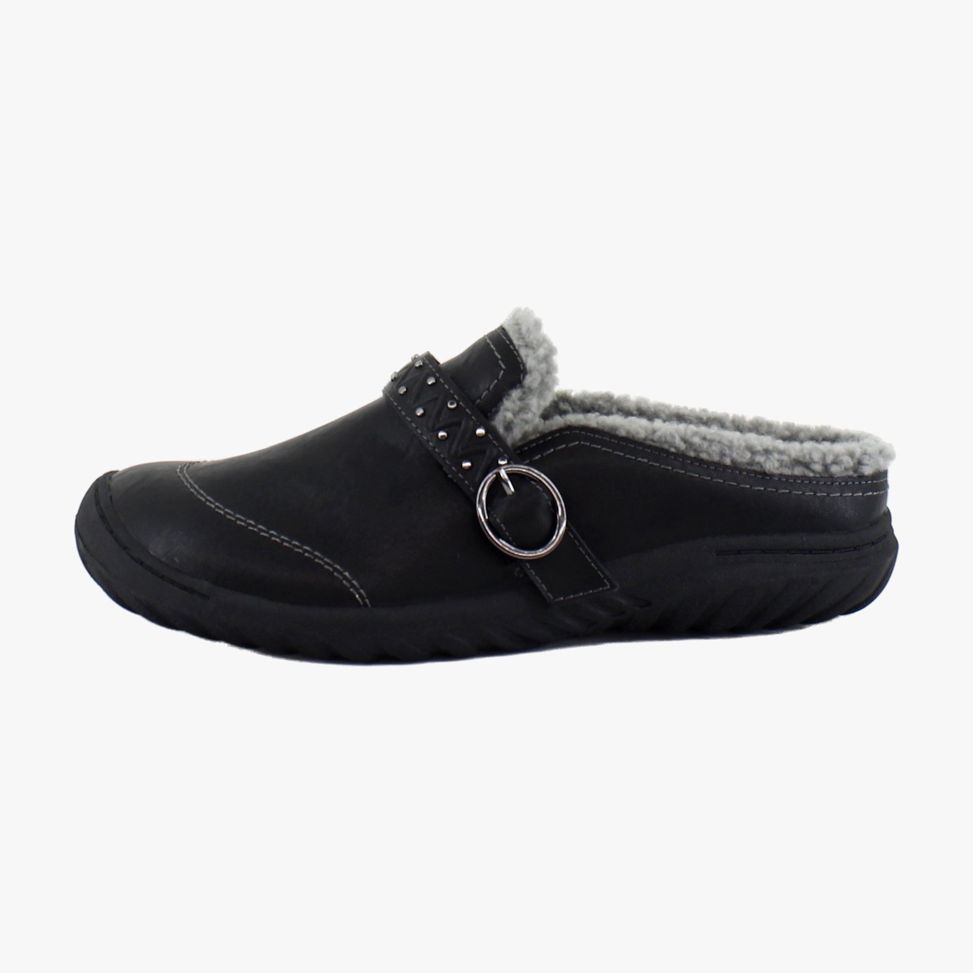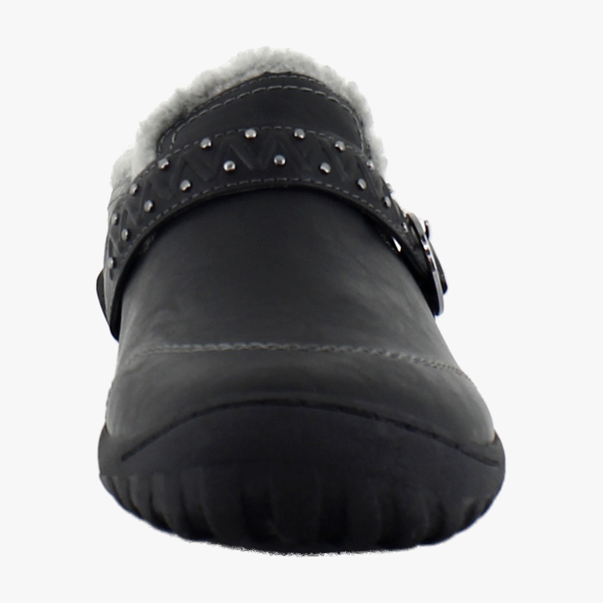 Step into the Jambu Riley, a stylish yet comfortable mule for women. Its unique design pairs distressed vegan leather with polished embellishments and an eye-catching zig-zag strap. Lined with cozy vegan sherpa and boasting a cushioned memory foam insole, this footwear promises all-day comfort, while its flexible outsole with superior traction ensures a steady stance on various surfaces.