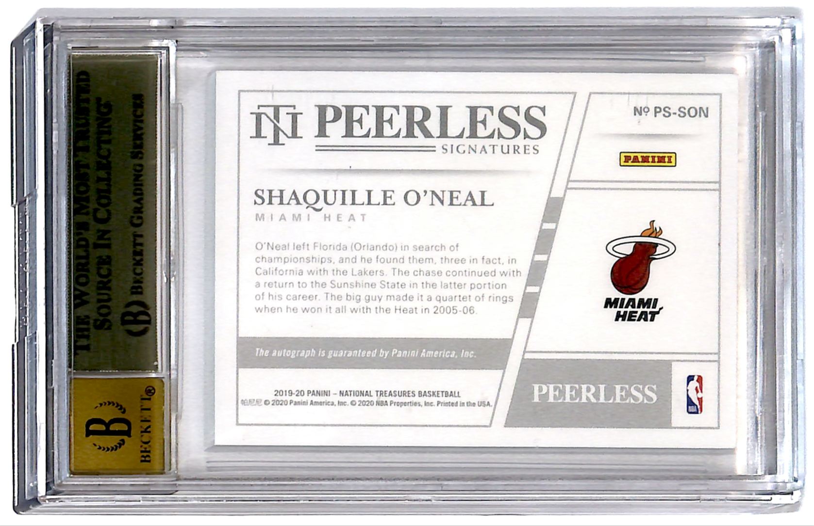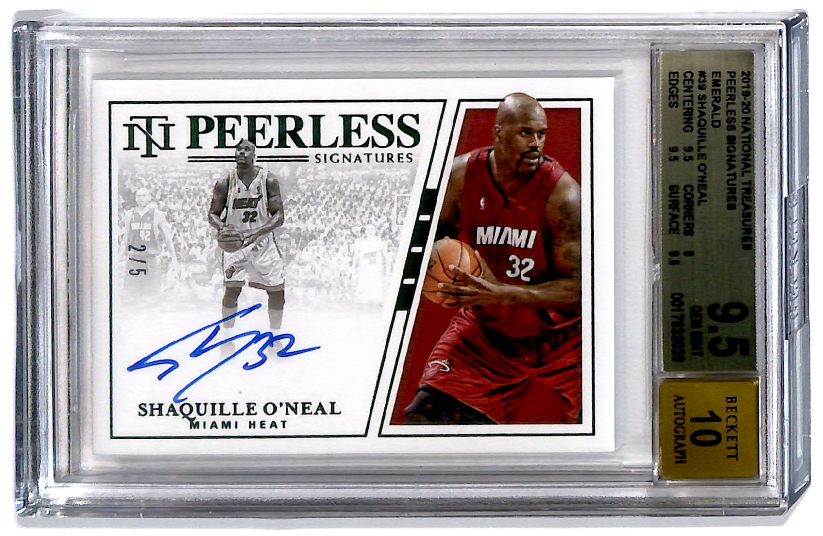 | 2019-20 National Treasures Auto Emerald 2/5 Shaquille O'Neal BGS 9.5 R6220J |
