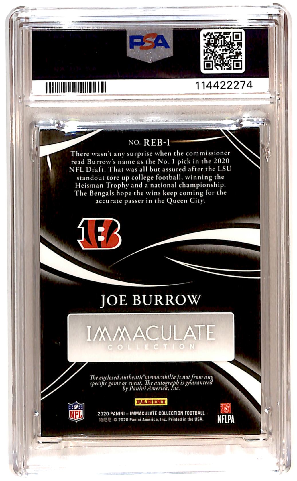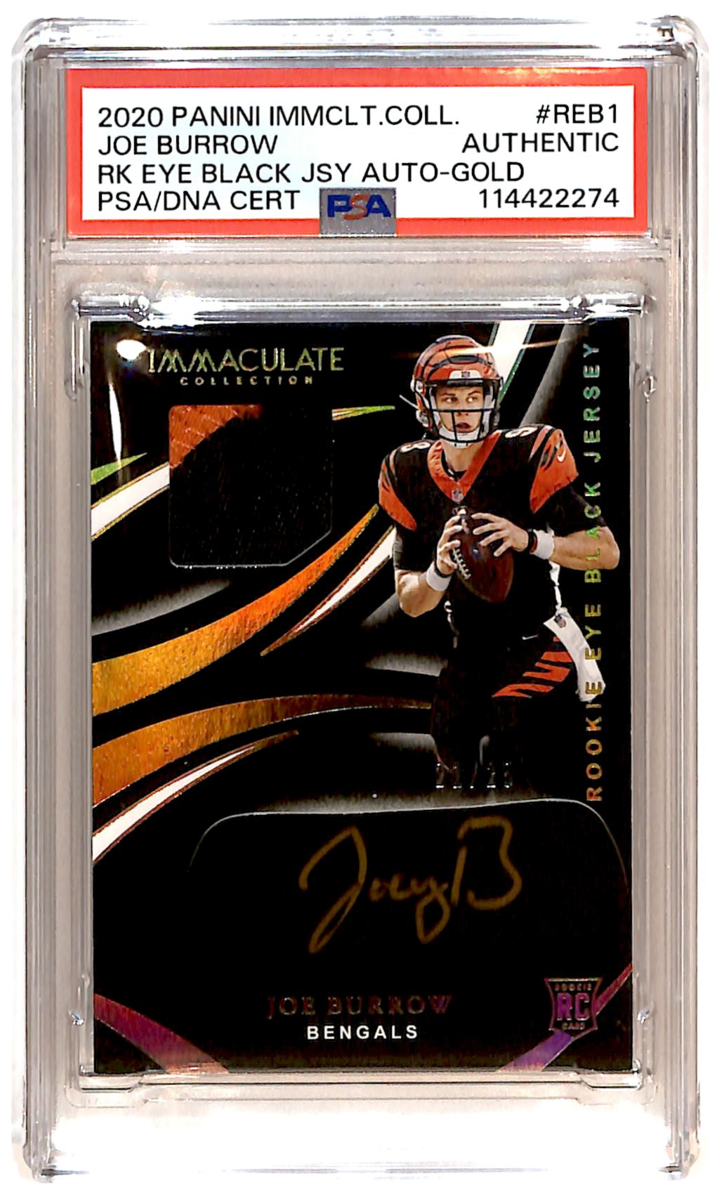 | 2020 Immaculate Eye Black RPA Gold 21/25 Joe Burrow Rookie Auto PSA 1 R6220J |