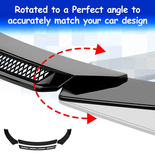 1. Premium Material: Front bumper lip spoiler is made of premium ABS material, wear resistant, not easy to break, sturdy and durable. 2. Strict Standards: Built to greatly quality control standards, front bumper lip body kit has stable performance and high reliability. 3. Unique Style: Exquisite workmanship, front bumper lip splitter is a great decoration to upgrade the look of your car, increases your racing style. 4. Protection: Professional manufacturing, front bumper lip spoiler wing prevents scratches, effectively protects your car from damage. 5. Easy Installation:The product features a three-section design for easier installation and reduced risk of breakage in the middle section.The addition of a lower grille ensures smoother airflow at the base.