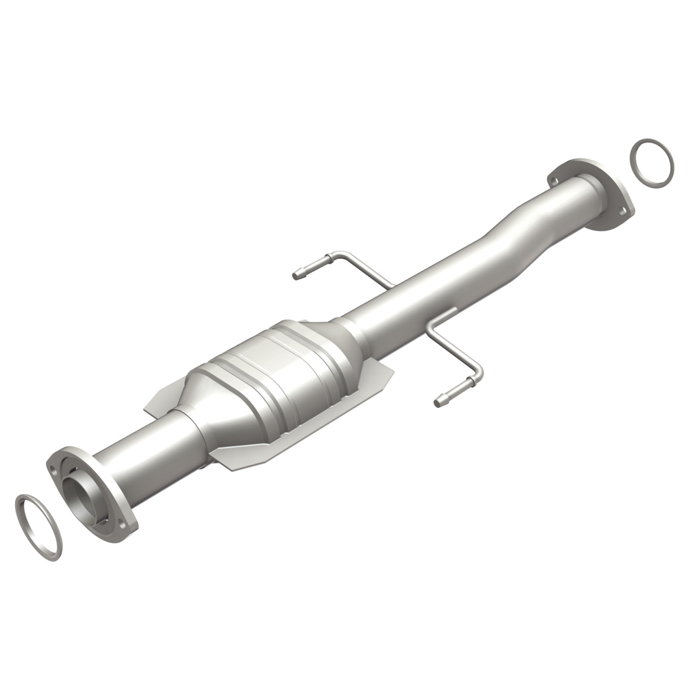 Keep the check engine light off with MagnaFlow OEM Grade Federal/EPA Compliant Direct-Fit Catalytic Converter 51453. With features including free-flowing mandrel-bent tubing and highly corrosion resistant stainless steel construction, easily install this converter yourself using the proper tools, no cutting or welding required. MagnaFlow's state-of-the-art metrology department uses the latest 3D scanning systems during research and development, so you can be confident that your new part will fit and function like the original equipment. By replicating the OE design, the single laser fusion weld greatly reduces the possibility of a leak, and our compact, low-mass design also allows for greater thermal efficiency. This Direct-Fit Catalytic Converter is designed to fit the 1999-2004 Toyota Tacoma 2.4L & 2000-2004 Toyota Tacoma 2.7L. MagnaFlow 51453 includes (2) Flat Ring Gaskets and interchanges with OE parts 17403-0C010, 17403-0C011. This replacement part is designed to meet or exceed Federal emissions requirements set forth by the EPA, complying with legal standards for OBDII Federally registered vehicles with California or Federal/EPA Emission systems.