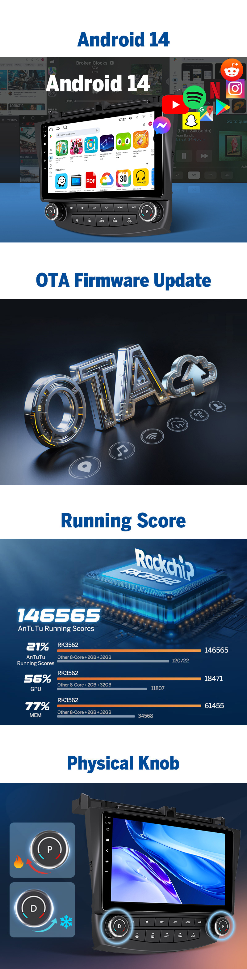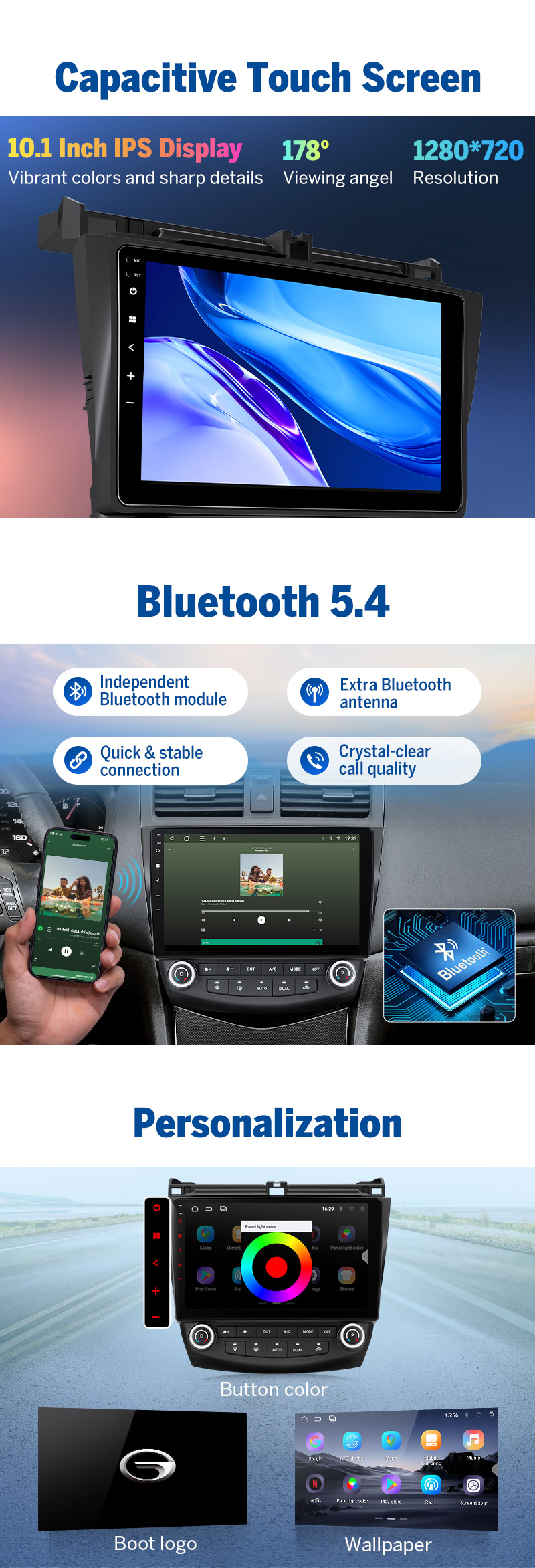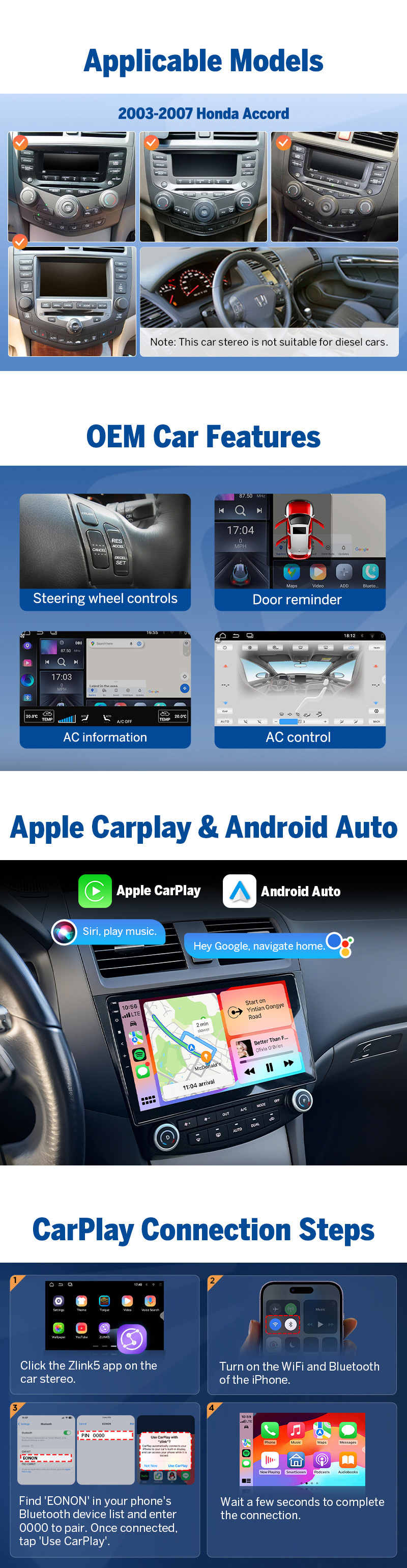 The Eonon HAC1X7 is purpose-built for Accord 2003–2007, combining Android 14 performance, wireless smartphone integration, premium DSP sound, and factory-style fitment—no wire cutting required.