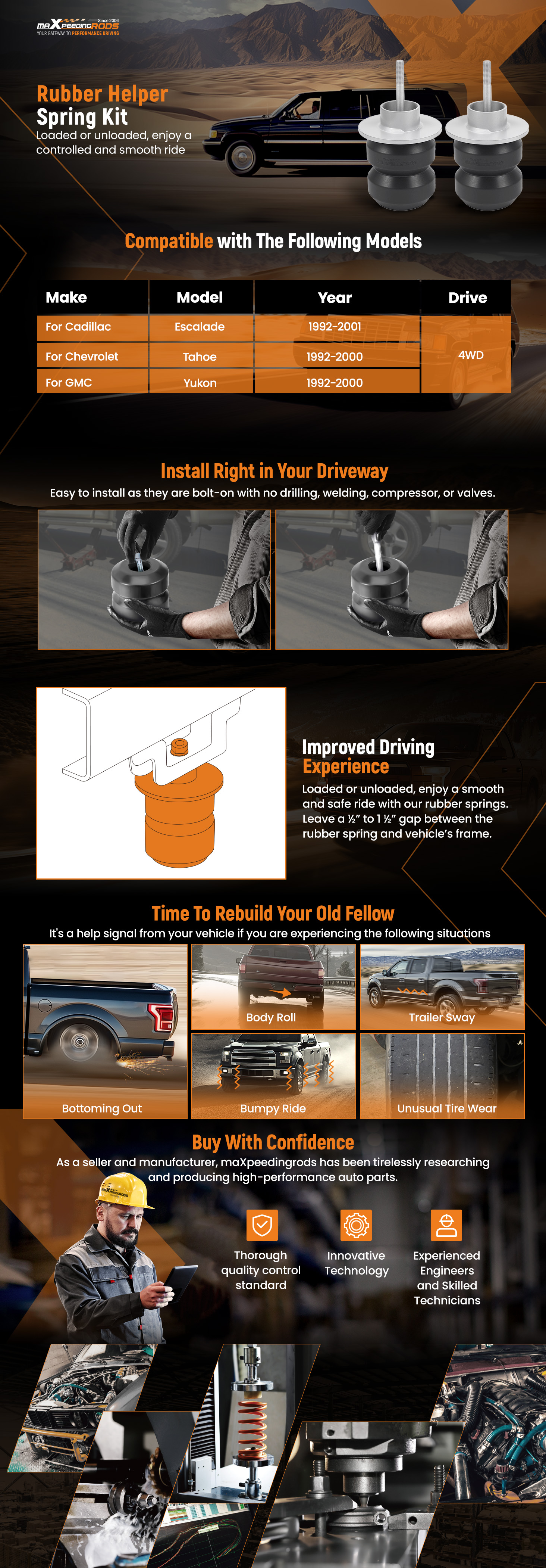 maXpeedingrods Rubber Helper Spring Kit For Cadillac GMC Yukon Chevy Tahoe 92-00