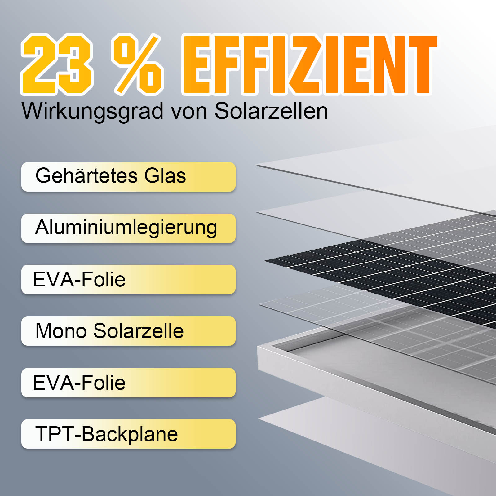 monokristallines Silizium. Selbstverständlich ist Montagematerial auf Anfrage auch separat erhältlich.