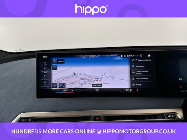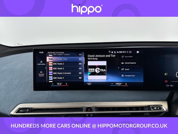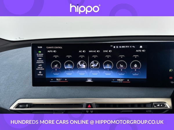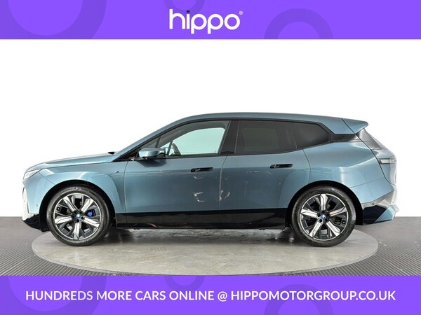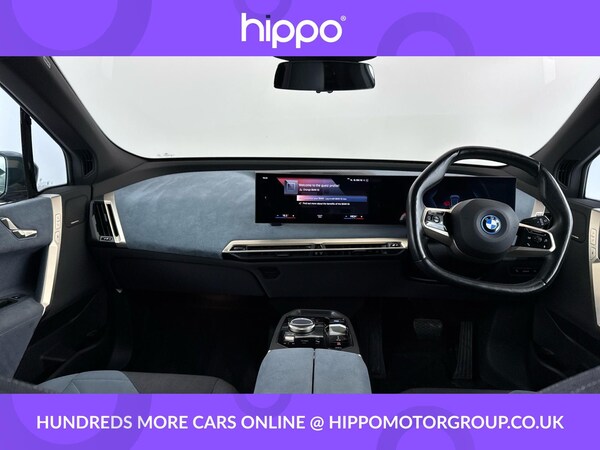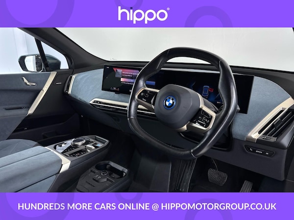 Presenting a BMW iX 50 111.5kWh M Sport Edition SUV 5dr Electric Auto xDrive, featuring 523 PS for an engaging driving experience and a total mileage of 54,973 miles. This vehicle has been well maintained with two documented services, the most recent at 54,000 miles, ensuring it remains in prime condition. This edition comes equipped with a premium Harman Kardon Surround Audio Sound System, offering superior in-car entertainment. Comfort is further enhanced by front heated seats, perfect for colder days. The impressive Sky Lounge Panoramic Glass Sunroof floods the cabin with natural light, creating an airy and relaxing environment for all occupants. This BMW iX offers not only advanced electric performance but also a strong focus on passenger comfort and luxury. The M Sport Edition combines dynamic style features with practicality, providing an excellent balance between everyday usability and distinctive design. Hippo Approved is known for a wide selection of vehicles suited for various needs and budgets. Each car undergoes a rigorous 130-point quality and safety inspection at our state-of-the-art £3 million preparation centre, ensuring your peace of mind. Additionally, we offer tailored finance packages for personal and business use, making it easy to acquire your ideal car.