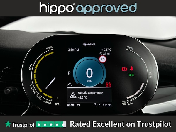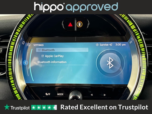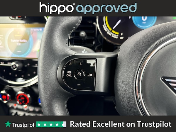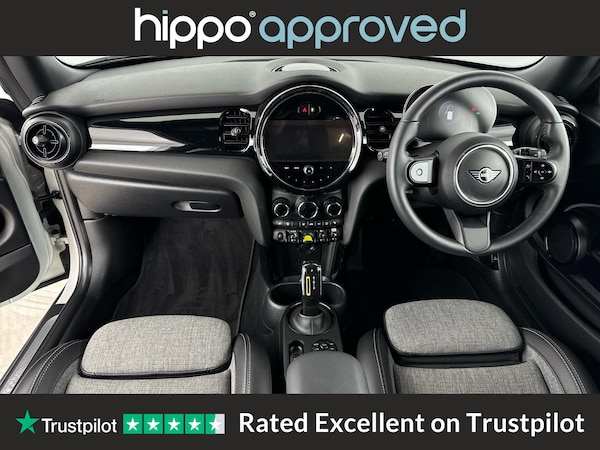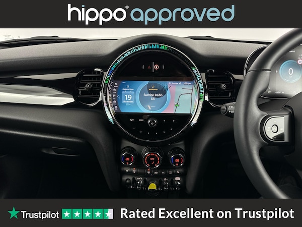 MINI Electric Hatch Cooper SE 32.6kWh Level 2 Hatchback 3dr Electric Auto, finished with just 3,519 miles on the clock, is an excellent choice for those seeking a modern electric vehicle. This model features distinctive 17-inch Tentacle Spoke alloy wheels in black and an 8.8-inch touchscreen display with an LED ring, providing intuitive access to vehicle settings and infotainment. The cabin is designed for comfort, offering automatic two-zone air conditioning, heated seats, and a sport leather steering wheel with multifunction controls. Convenience and safety are enhanced by the Driving Assistant Pack, cruise control, and a rear view camera, while connectivity is ensured with Bluetooth for compatible mobiles, along with FM tuner, DAB digital radio, and the Navigation Pack. The interior benefits from the Ambient Light package, creating a refined driving environment. Hippo Approved is known for a wide selection of vehicles suited for various needs and budgets. Each car undergoes a rigorous 130-point quality and safety inspection at our state-of-the-art £3 million preparation centre, ensuring your peace of mind. Additionally, we offer tailored finance packages for personal and business use, making it easy to acquire your ideal car.