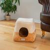 2-In-1 Cat Bed Cave Shape And Cuddle Pet Bed, Brown/Beige