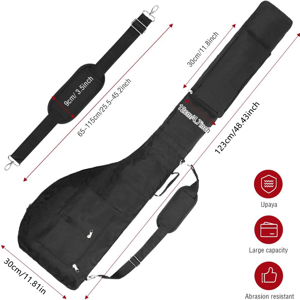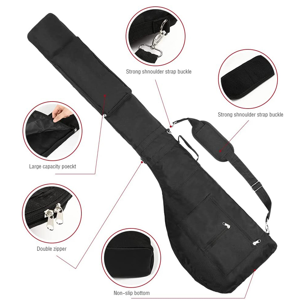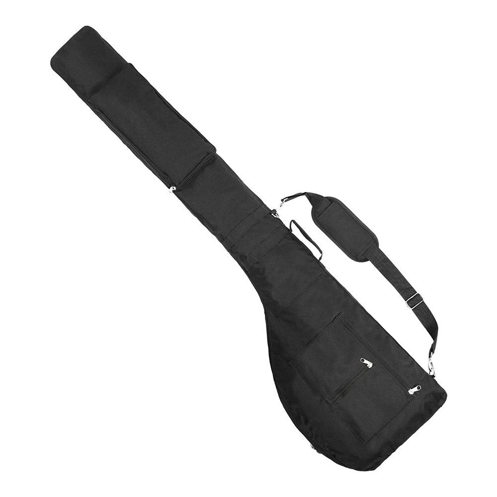 Features: 【Large Capacity With Pocket】Large capacity of the mini golf carry bag can hold up to 8-9 golf practice clubs. There are 2 big side pockets outside the golf bag for you to put the ball, gloves, divot tools, bottle or anything else you may need during your round, as well as a card holder designed to hold your cards. Keep your belongings in your bag to keep you relaxed while exercising. 【Lightweight Effort-Saving Design】Ergonomically designed, soft handle with padded on the side, designed to lift in with less effort. Equipped with a detachable strap, with wide pad makes it more comfortable to carry. You can choose to hold it or carry it on your back according to your preference. Our design is only for you to bring your portable bag to the driving range with less effort for practice. 【Multiple Material】Made of nylon environmental protection material, make golf bag with a waterproof and scratch-resistant surface. There is a non-slip material on the bottom, so that when you take the golf club, it will not slip on the lawn. Fine stitching, stainless steel material for zipper, strong plastic buckle for strap, not afraid of rust after long use. Multiple durable material is for make it more suitable for outdoor use. 【Foldable Design】 Take out of clubs and fold the golf club bag. When not in use, foldable design is good for you to storage lightweight carry golf bag without take much space. 【Daily Golf & Gift】Ideal for everyday on-the-golf workouts with practice golf club carry bag, more effective practice.It is suitable for going to the golf course on Sunday, or as golf travel bag. It is perfect gift to given golf lovers, and it is convenient to carry golf necessities. Specifications: Material: Nylon Color: Black Size: approx. 123 x 30 cm/48.43 x 11.81 in Package Includes: 1 x Golf Carry Bag