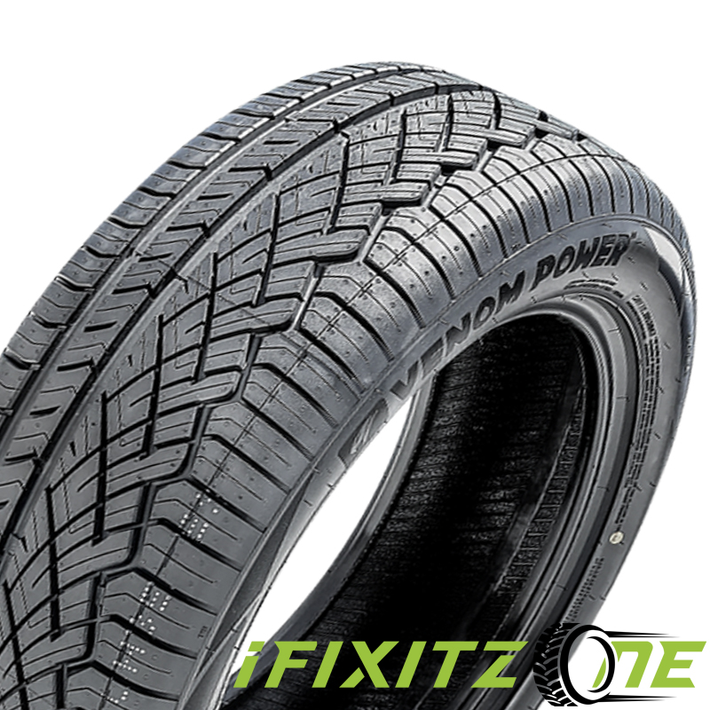 The Venom Power Covert Grip ASP is an all-season ultra-high-performance (UHP) tire engineered to provide exceptional handling and grip in all weather conditions for a variety of vehicles, including passenger cars, crossovers, and SUVs. This is achieved through its unique asymmetrical tread design, where the inner and outer tread patterns differ to optimize performance based on the specific contact patch area. Its innovative asymmetrical tread design ensures exceptional all-season traction, from scorching summers to icy winters. With features like an advanced tread compound for superior grip and stopping power. Venom Power offers a 50,000-mile treadwear warranty with this model.