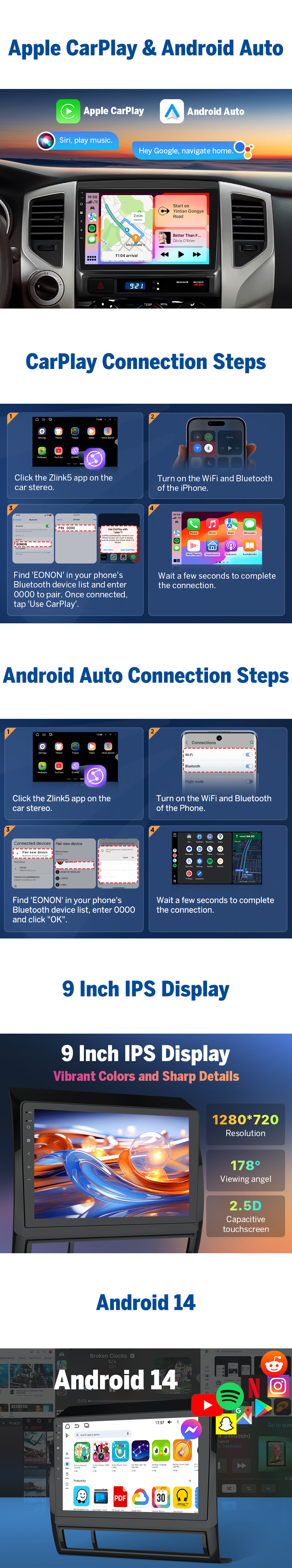 This Android Version head unit is a top choice for Toyota Tacoma owners seeking a modern Double DIN touchscreen upgrade with smooth GPS Navi performance, enhanced DSP tuning, and reliable Plug & Play installation. Designed for drivers wanting Wireless CarPlay, Android Auto, strong WiFi 6 connectivity, and stable Bluetooth 5.4 calling, it delivers a safer and more connected driving experience. The responsive interface supports Split-Screen multitasking, RAM/ROM capability, and full compatibility with Tacoma 2005–2013 dashboards. Ideal for shoppers searching “Android truck stereo,” “2 DIN Android Touchscreen radio,” “Tacoma compatible Android head unit,” or “CarPlay Android Auto GPS navigation system.” Android 14 4+64 9in for Toyota Tacoma 2nd Gen CarPlay Head Units GPS Plug & Play