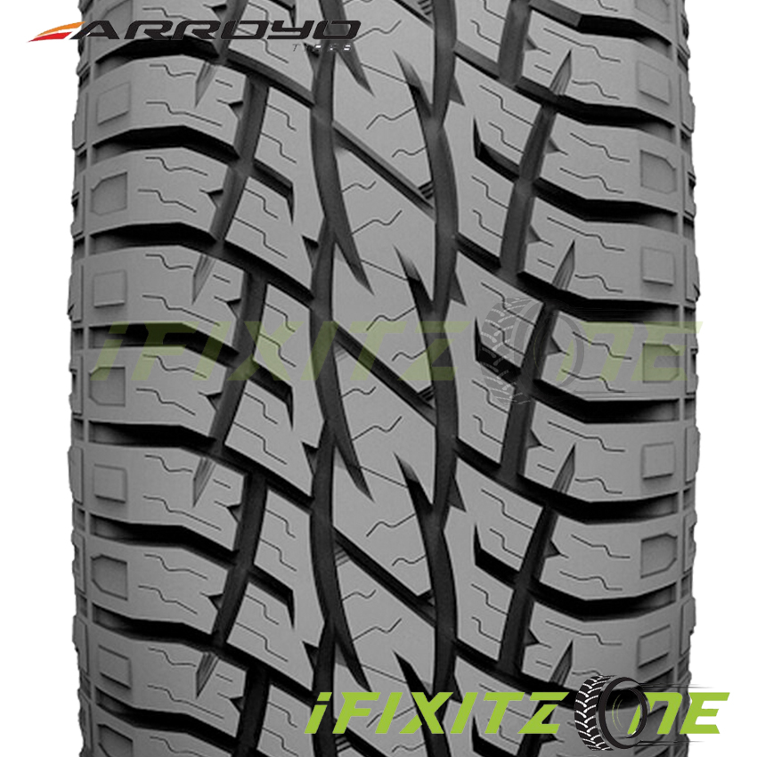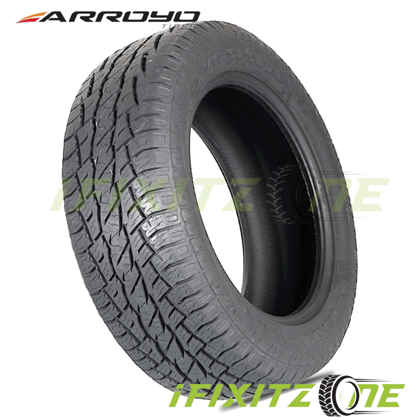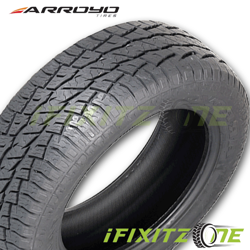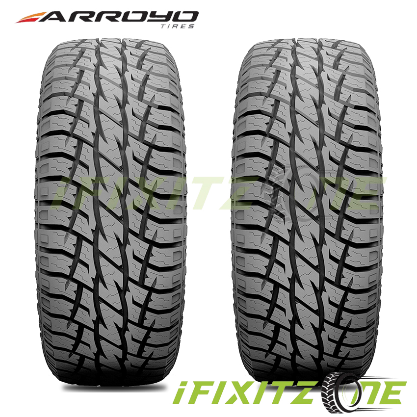 Arroyo's Tamarock A/T is an All-Terrain All-Season tire manufactured for SUV'S, Light Trucks, and Jeeps. The optimal tread design enhances the all-terrain traction. The staggered tread blocks and wide grooves increase the model's off-road performing ability. These elements boos the dry, wet and winter weather grip on the road surface. The Tamarock A/T features staggered elements and high void ratio that keep the footprint of the tire clean. They work to eliminate mud and snow and eject rocks stuck between the tread elements. In this manner, the tire can easily overcome all terrain surface conditions by maintaining traction, including when performing in deep mud or loose dirt.