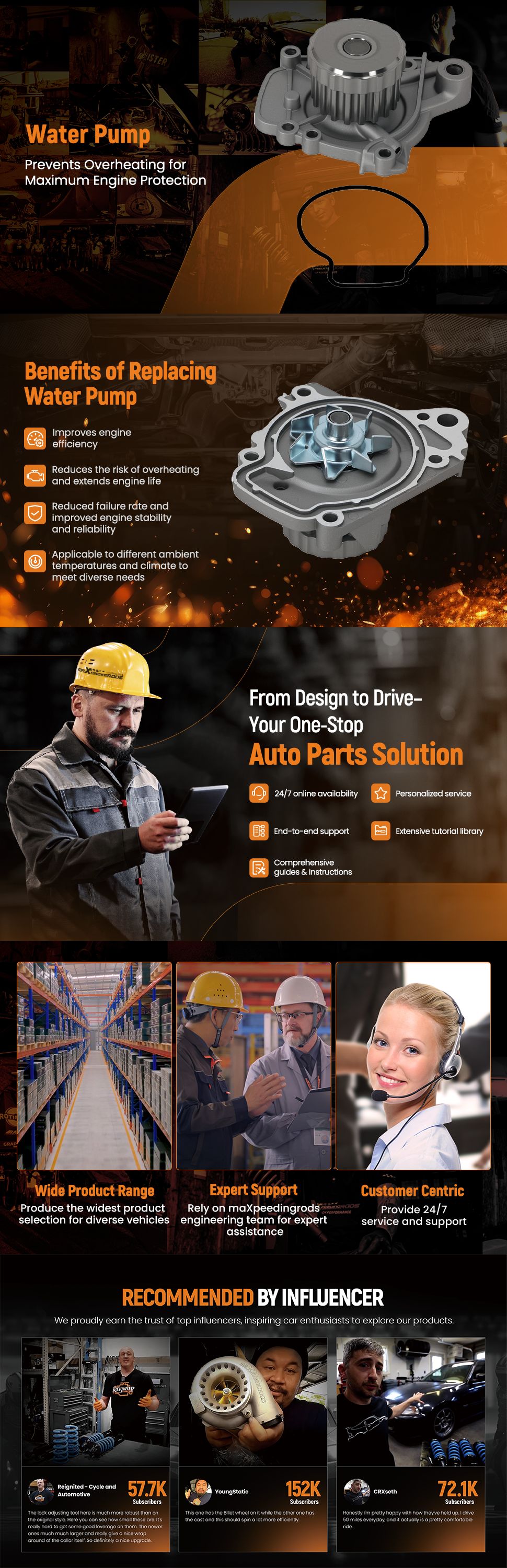 Coolant Pump Assembly for Honda Civic 1.7L 2001-2005 WP-9207 Direct Replacement