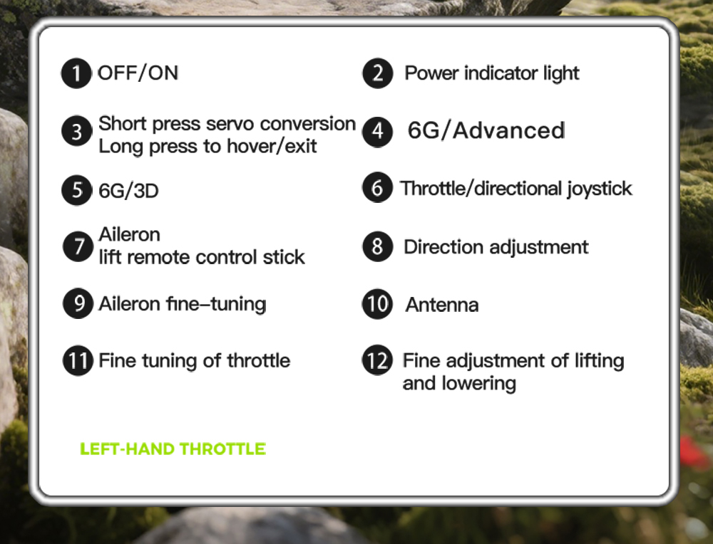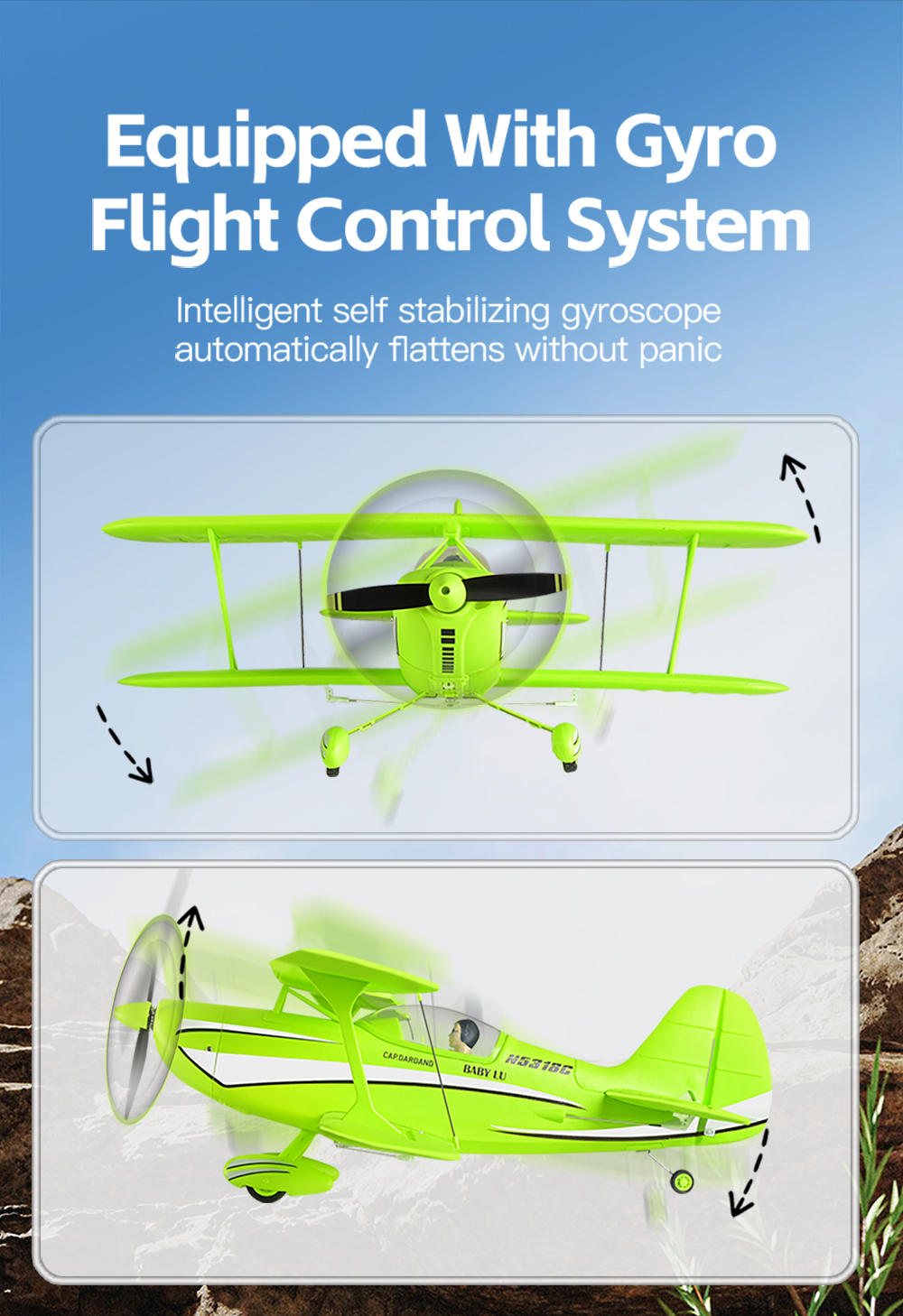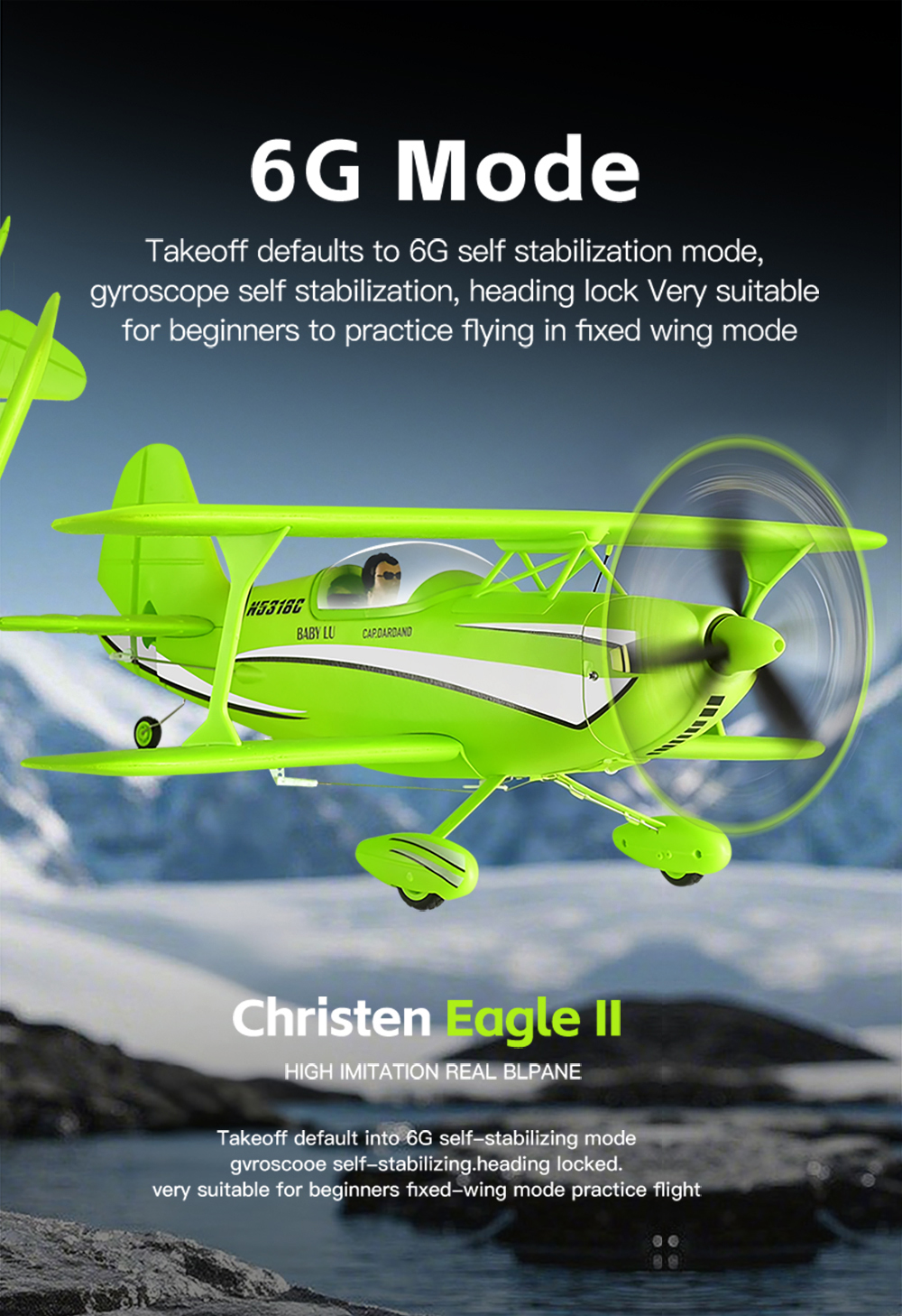 3D / 6G Dual Flight System:Supports 6G self-stabilized mode for beginners and 3D aerobatic mode for experienced pilots, switchable in flight for versatile flying scenarios.