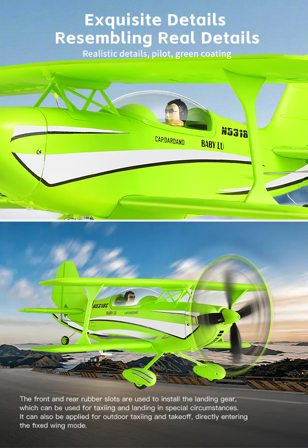 Realistic WWII Biplane Design:High-simulation Beech D17S biplane styling with EPP composite structure, combining scale appearance with excellent impact resistance.