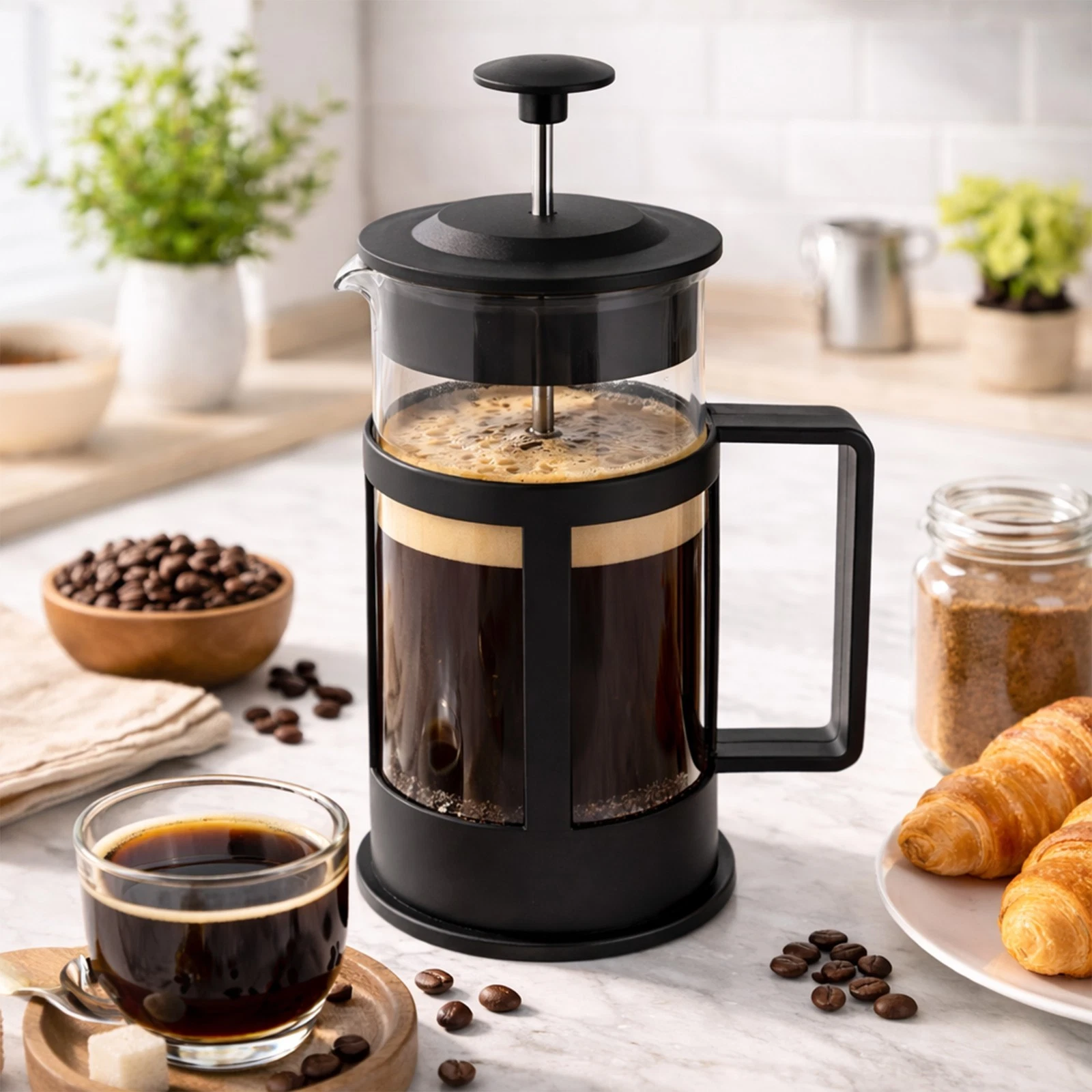 Enjoy the perfect cup of coffee or tea with this French Press Coffee Maker & Tea Plunger. Designed for simplicity and flavour, this manual brewing method extracts rich aroma and natural oils to deliver a smooth and full-bodied drink. The durable glass beaker and filter plunger system effectively separates coffee grounds or tea leaves, giving you a clean and balanced drink every time. Whether you prefer fresh ground coffee or loose-leaf tea, this French press is a stylish and practical addition to any kitchen.