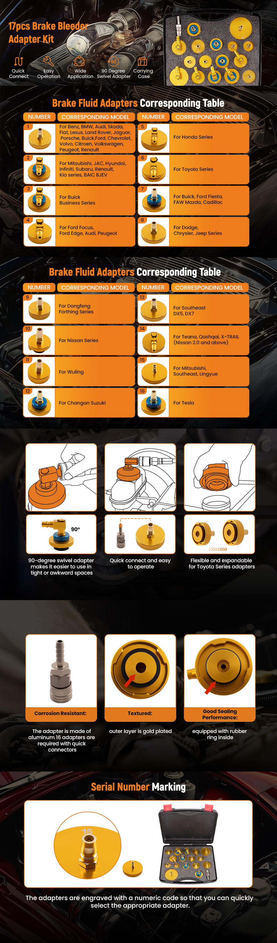Brake Bleeder Kits Master Cylinder Adapters Set Brake Oil Fluid Bleeding Tools