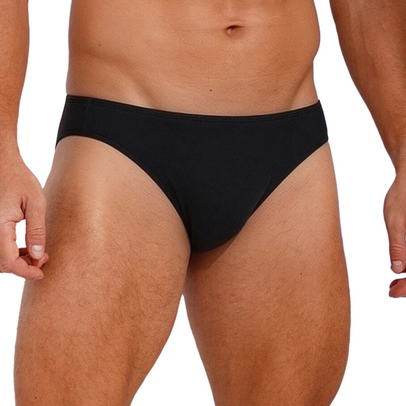 Low-rise thong for men, solid color, pull on closure, front bulge pouch, provides more space for private parts without extrusion or constraint.