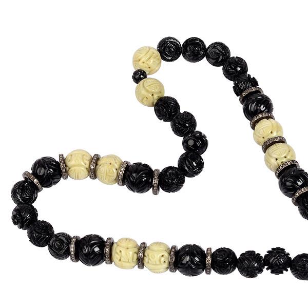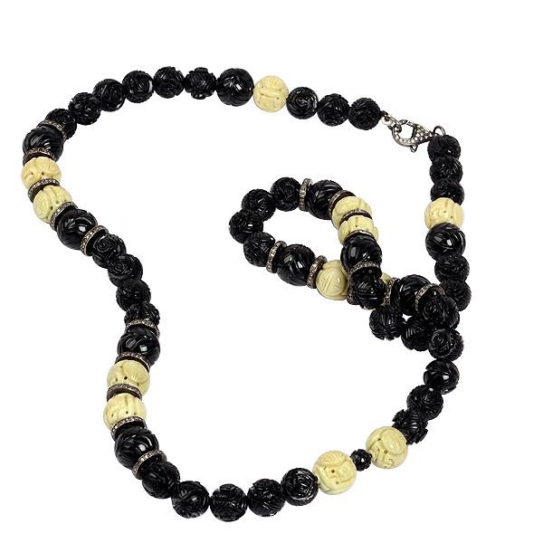 Christmas Onyx Gemstone Opera Necklace 925 Sterling Silver Diamond Jewelry