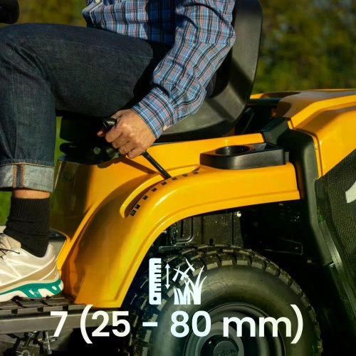 | Schnitthöhe | 25 - 80 mm (7 Positionen, manuell per Hebel) |
