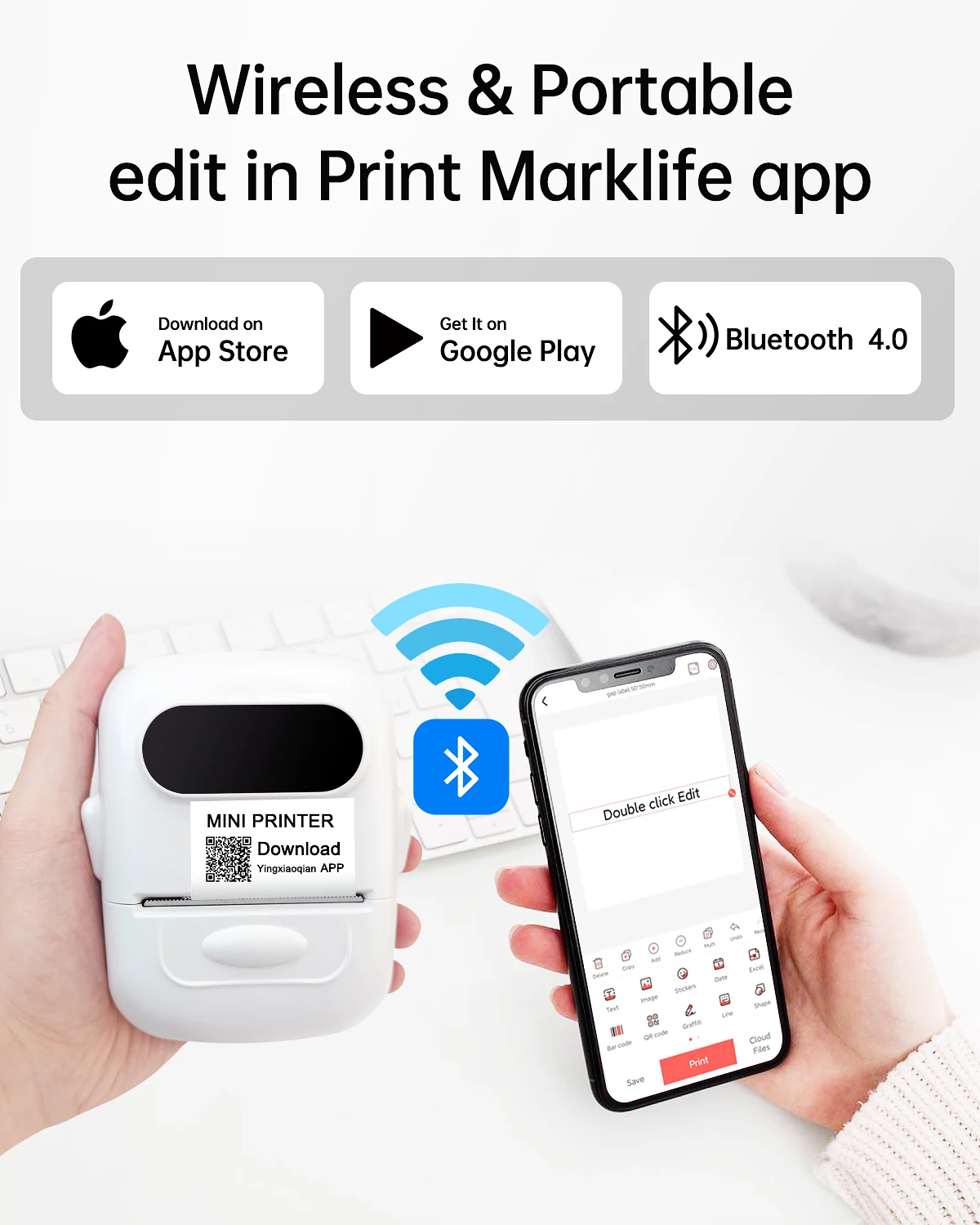 Marklife Bluetooth label printer has an extensive variety of uses and creative possibilities. and Enjoy Labeling Anything Anywhere like Small businesses: clothing, crafts, retail, jewelry etc. Labeling address, barcode, shipping, price, date, ingredients, logos labels for product. Save you a lot of time for handwriting labels, allowing you to focus more on your small businesses