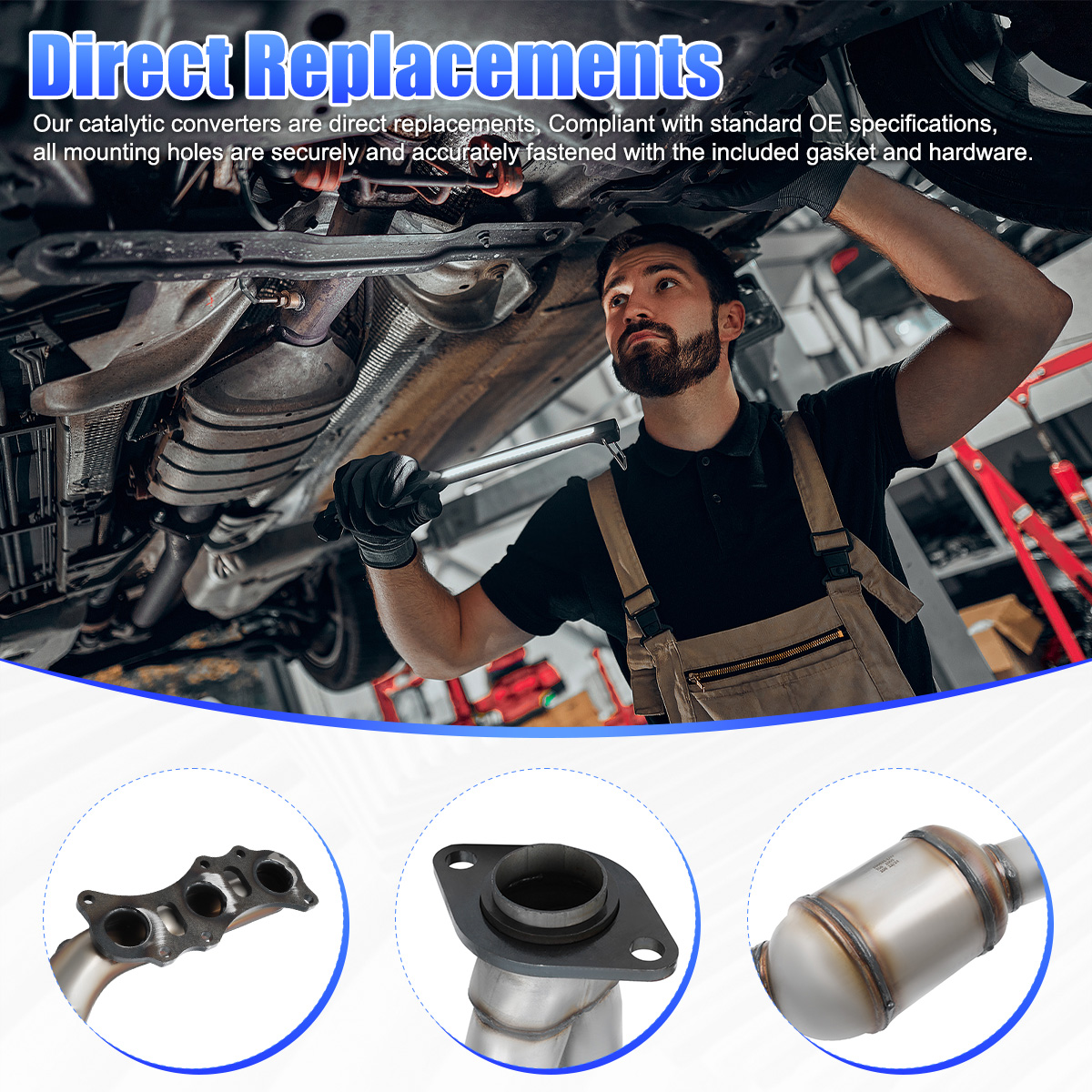 2.Our catalytic converters are direct replacements, Compliant with standard OE specifications, all mounting holes are securely and accurately fastened with the included gasket and hardware.