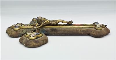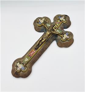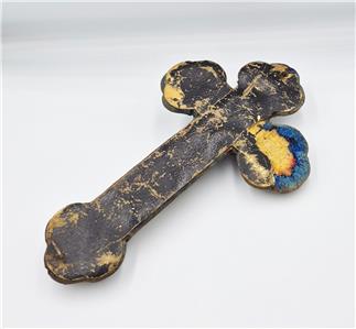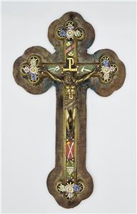 Condition: Wear commensurate with age and use. The christ figure doesn't seem too secure but stays in place. The fabric parts are in poor condition.