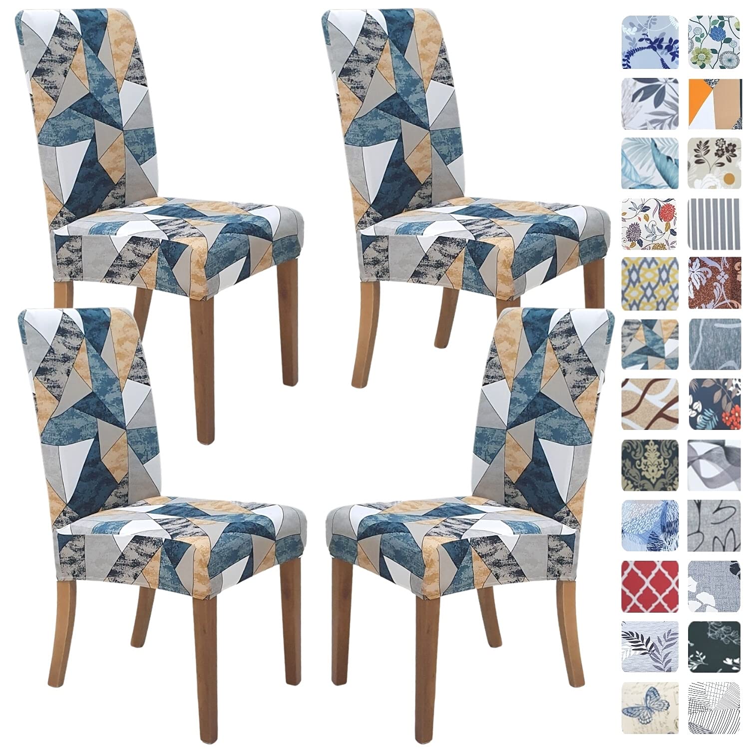 SPRINGRICO Dining Room, Party and Wedding Chair Covers. Multiple different Colors We have white chair covers, black seat covers, yellow chair covers, gold chair covers, jacquard patterns for spring table décor, ivory cream & brown spring rose, cherry blossom flower print striped coverings, chair covers for Easter, Christmas, Halloween, valentine, thanksgiving and so much more! We have multiple styles of printed colorful dining chair slipcover to choose. Sets available in 3 pack sizes dining chaircovers set of 2, set of 4, Dining chair covers set of 6 or 4-6 pack Universal Stretchable chair covers elastic chair covers made from polyester spandex fits all regular dining chairs without arms and some larger square top chairs (not for oversized or extra large or extra wide or xl or folding or round or rounded chairs or bench or slipper accent chairs). Most popular as fitted Parson chair covers. These easy fit dark, thick elegant Chair’s dust cover sets can also be used & make amazing pair with armless wood or wooden chairs, office chair, living room chair, Ikea hendriksdal stocksund ekedalen chair. Machine washable chair protectors covers color-fast dining room chair seat covers protect your precious chairs against kids toddler scribble, pet cat dog hair, scratch, stains or spills and make life easy & enriching your home decor at the same time. Not stainproof, so watch those red wine nights! Ideal for farmhouse, bar, country holiday house, banquet chair covers, a special birthday chair cover, wedding chair decorations, and of course as a new aesthetic for your modern dkitchen dining room! It is a cheap and economical way to reupholstery for your dining chair to look top notch & super cute. Order your set of decorative chair covers now, from springrico.