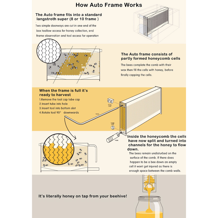 - High quality, food-grade, safe and environmentally friendly. You can shorten the frames to suit any hive. Potentially more honey can be harvested. About three kilos honey per frame can produce.