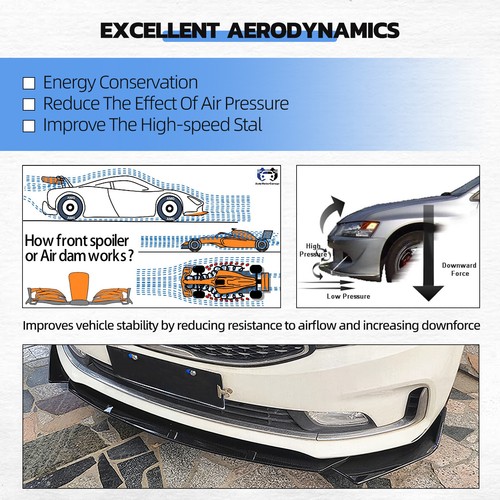 -Sporty Look: Our front splitter lip are designed to enhance the aesthetics of your vehicle, giving it a sporty look without being overly aggressive. They add a touch of style and uniqueness to your vehicle's exterior.