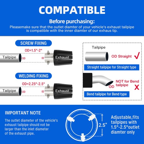 Universal fit – compatible with most 2.0" to 2.5" exhaust outlets (please measure your pipe diameter before purchase)