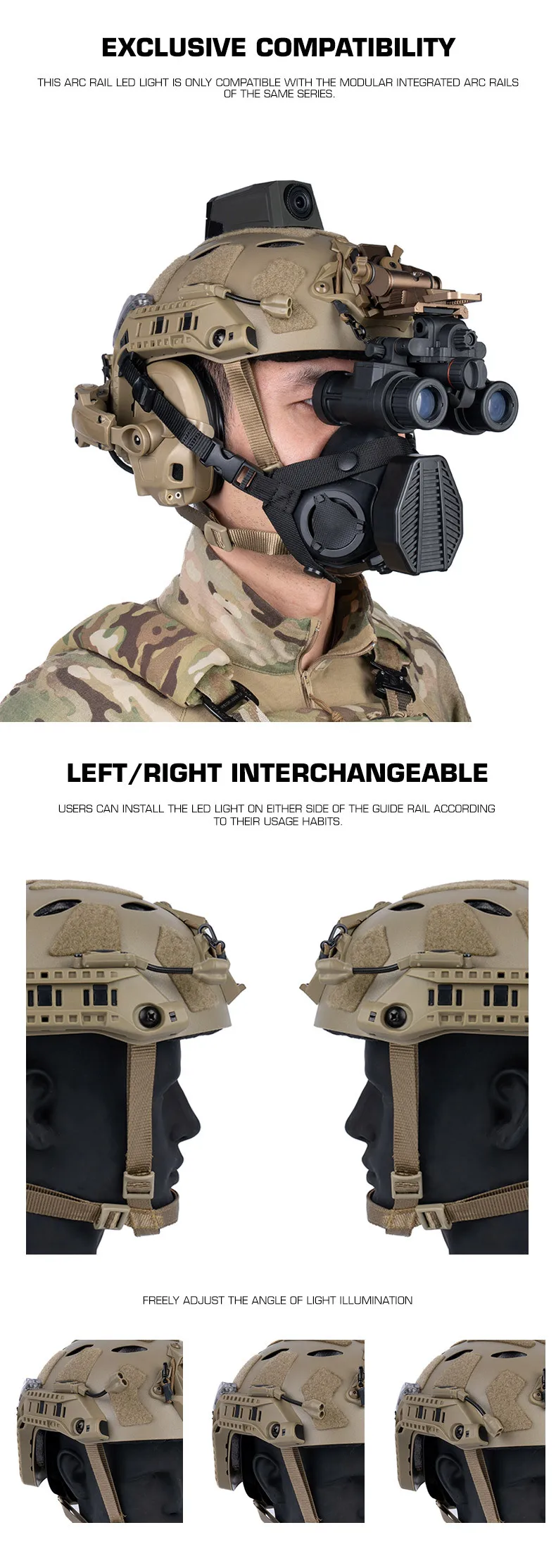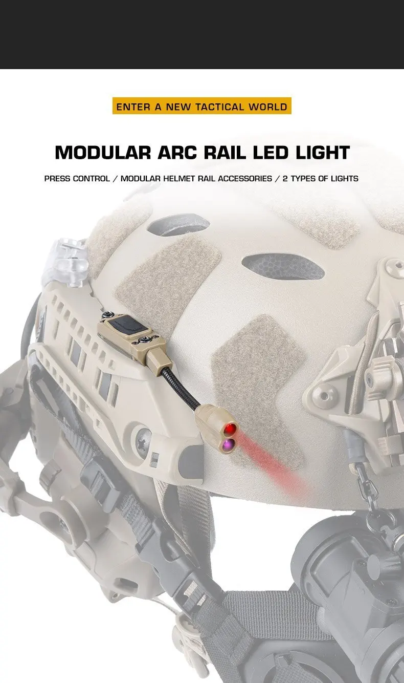 Tactical Modular ARC Rail LED Light Red/IR Helmet Accessories Head Lights Hunting Airsoft Fishing Gear