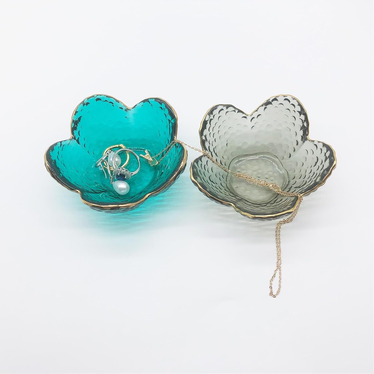 Premium Durable Construct Jewelry Bowl Dish : Small flower jewelry tray is made of high quality clear crystal glass material,the transparent design allows your jewelry and ring to be within reach. This jewlery dish is sturdy yet lightweight for convenient placement anywhere you need some extra stora space. The smooth glass surface and non-slip bottom can prevent scratches on your jewelry and counters. This decor jewellery tray is the solut for jewelry stora.