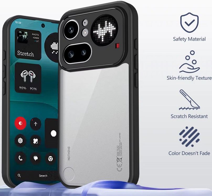 Es handelt sich um eine hochwertige Hülle, die einen durchsichtigen Rückenanteil mit einem schwarzen Rahmen vereint und somit der perfekte Schutz in Bestoptik für ihr Nothing Phone 4a Pro darstellt !
