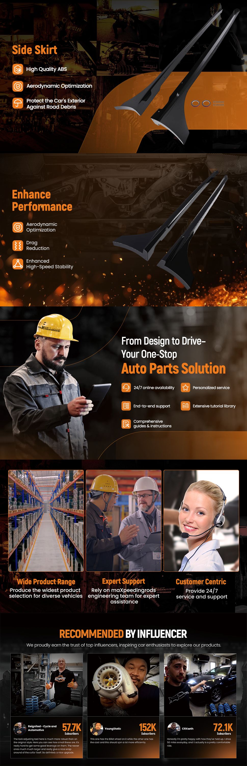 By directing airflow to create additional downforce, Side Skirt Extensions help improve traction and handling, especially during high-speed driving. This results in better control and a safer driving experience.