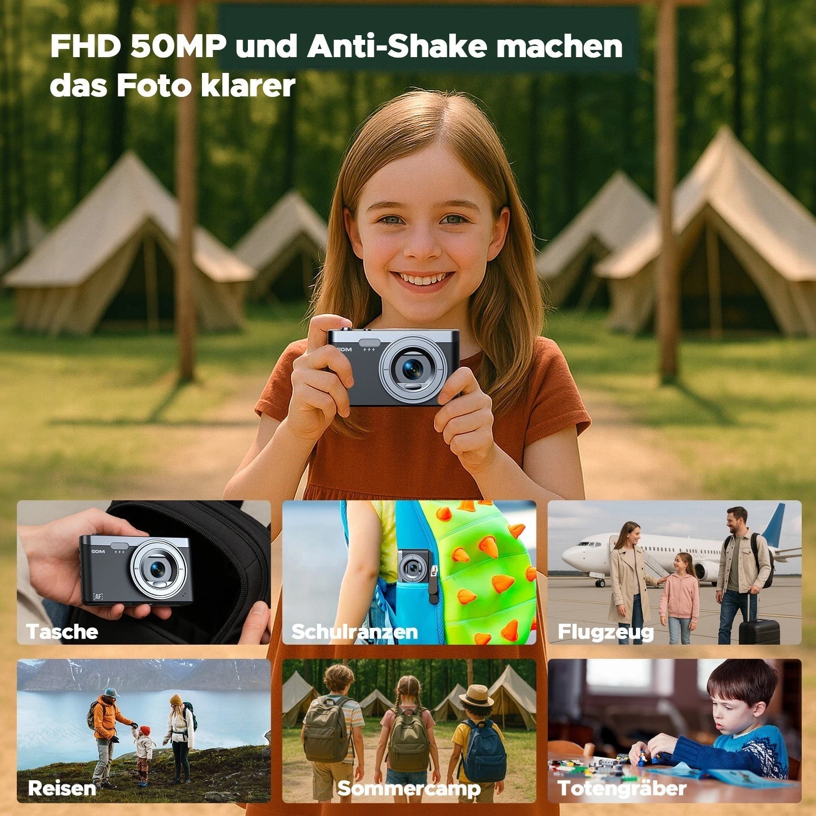 📸【Halten Sie die Schönsten Momente Ihres Kindes Fest】: Diese Digitalkamera mit Full HD 1080P Auflösung und 50MP ermöglicht es Ihnen, Ultra-High-Definition-Videos und Fotos aufzunehmen, die schönen Momente des Lebens festzuhalten und qualitativ hochwertige Animationen lebendig zu reproduzieren, außerdem verbessert die Anti-Shake funktion dieser Fotokamera das Aufnahmeerlebnis für Kinder und Anfänger erheblich und erhöht ihr Interesse an der Fotografie.