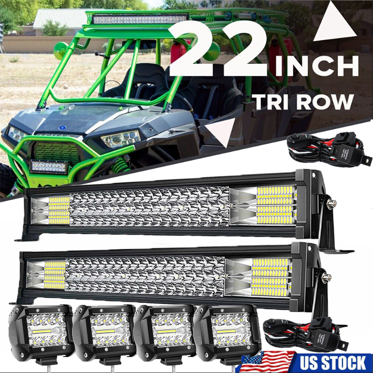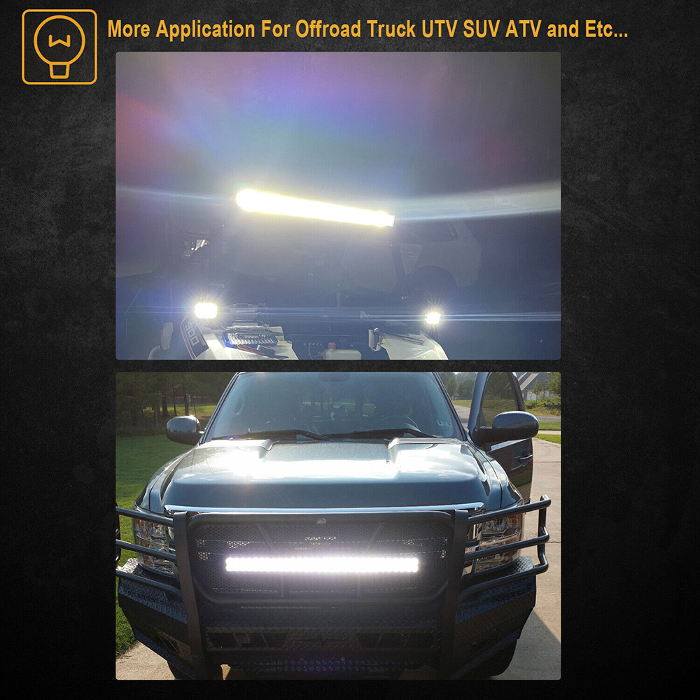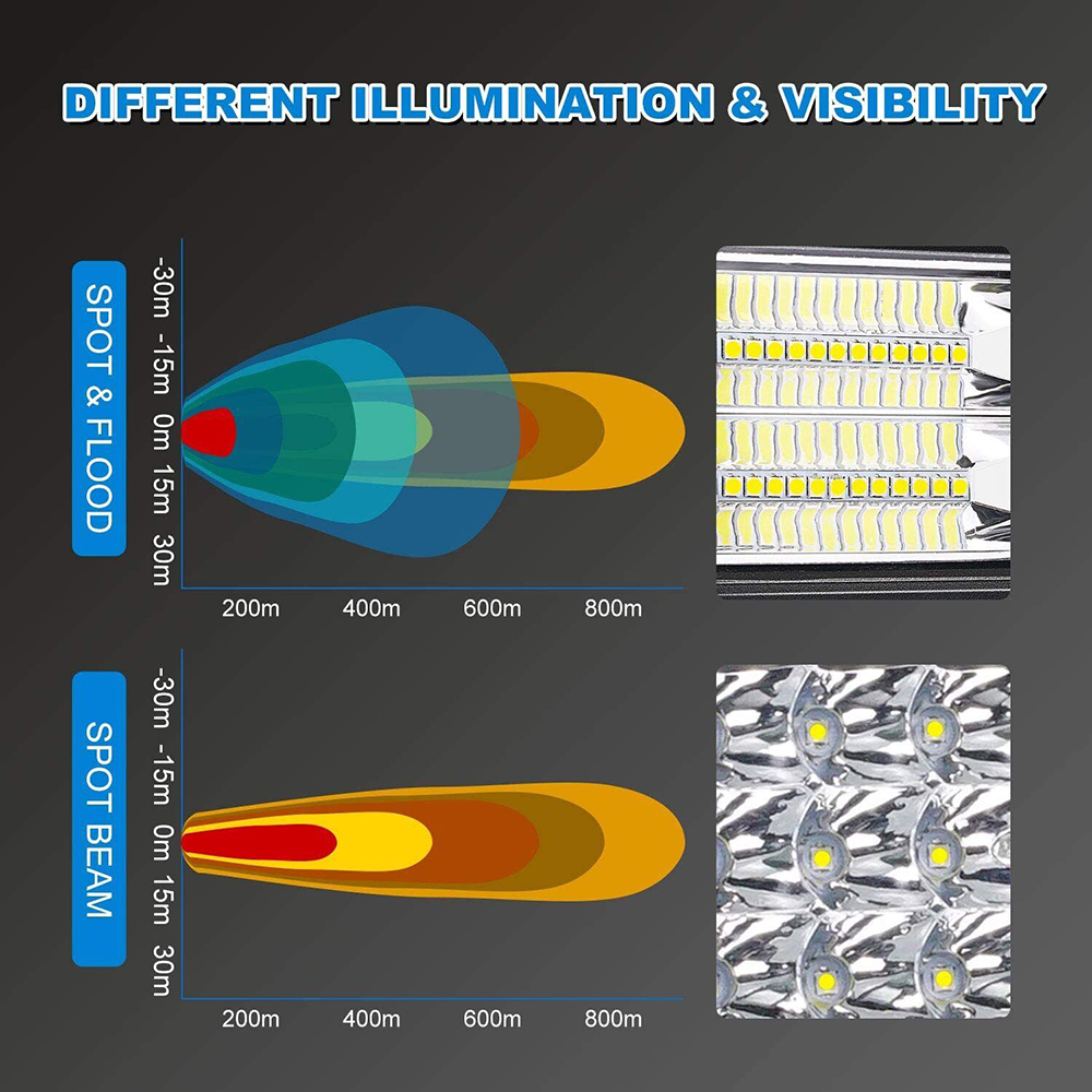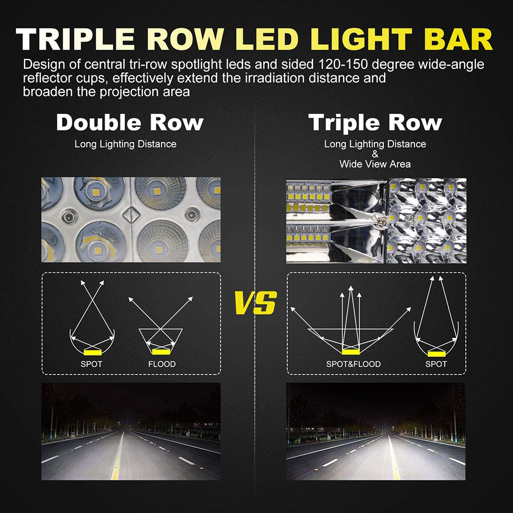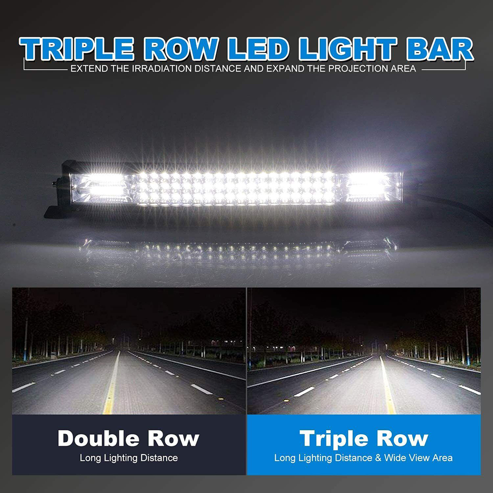 EXCELLENT LIGHTING EFFECT: Tri-Row 22 inches LED light bars featuring the lasting diecast aluminum body with jaw-dropping dual-row pure white light, is an ideal choice for different off-road use. Spot flood combo beam - bright flood beam for wider illumination range and focused spot beam for further irradiation distance.