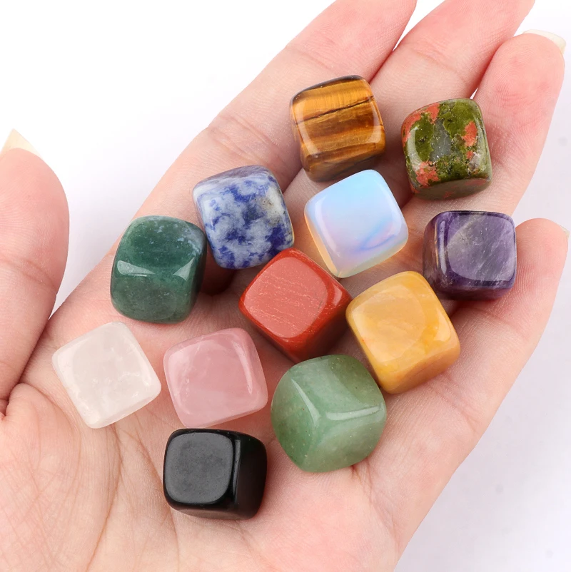 Set includes 12 precisely tumbled 13mm solid crystal cubes with smooth polished surfaces. Each piece showcases unique natural hues and textures—ideal for energy work, chakra alignment, and mindful decoration. No holes, designed for stable placement.