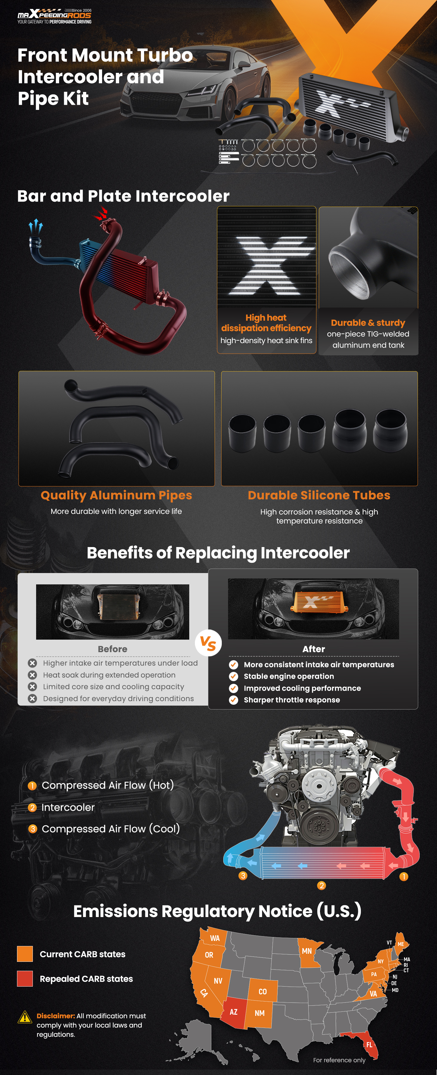 Intercooler, aluminum pipes, silicon hoses, clamps, hardwares. All same as the picture.