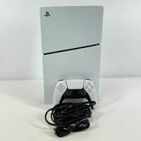Sony PlayStation 5 Slim Digital PS5 1TB White Console Gaming System CFI-2015 Items included in this sale: Sony PlayStation 5 Slim Digital PS5 1TB White Console Gaming System CFI-2015HDMI CablePower CableControllerSorry, no box or anything else included *Please note, if it is not listed it is not included - such as power cables or other accessories. Specifications: Collection Sony Gaming Sub-Collection Sony Consoles Brand Sony Model PlayStation 5 Slim Digital PS5 Platform Sony PlayStation 5 MPN CFI-2015 Storage Capacity 1TB Condition Good Type Console Gaming System Manufacture Date 2024 MFG Warranty? No Software Version Latest Color White Has a Disc Drive No UPC 711719592938 Serial# U457010DH10380437 Cosmetic condition: The console is in good pre-owned condition, showing a few noticeable scuffs, scratches, and signs of wear. The top is in good shape with a few minor but noticeable marks, and the bottom is also in good shape with minor yet noticeable scuffs and wear. Please view our close up photos, as these are taken of the actual item being offered for sale. Functionality condition: The console powers on and off properly. Please note that it does not have a disc drive, so games must be downloaded digitally to play. All ports are clean and working as they should, and the device has been reset with all accounts removed.