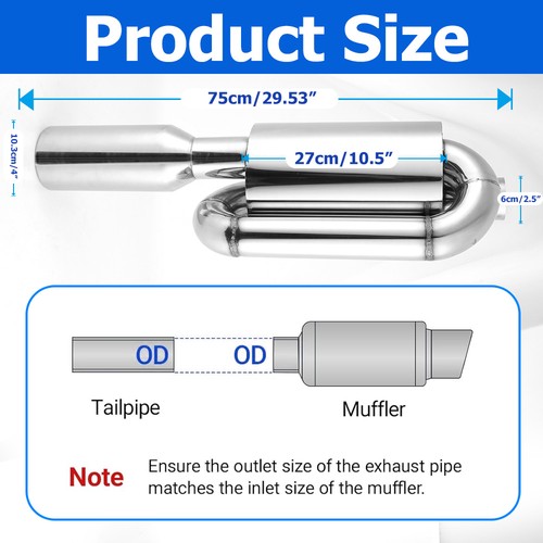 Designed to fit a wide range of cars and trucks, with a standard 2.5" inlet and 3.5"–4.0" outlet tip. Ideal for custom exhaust setups and aftermarket upgrades.